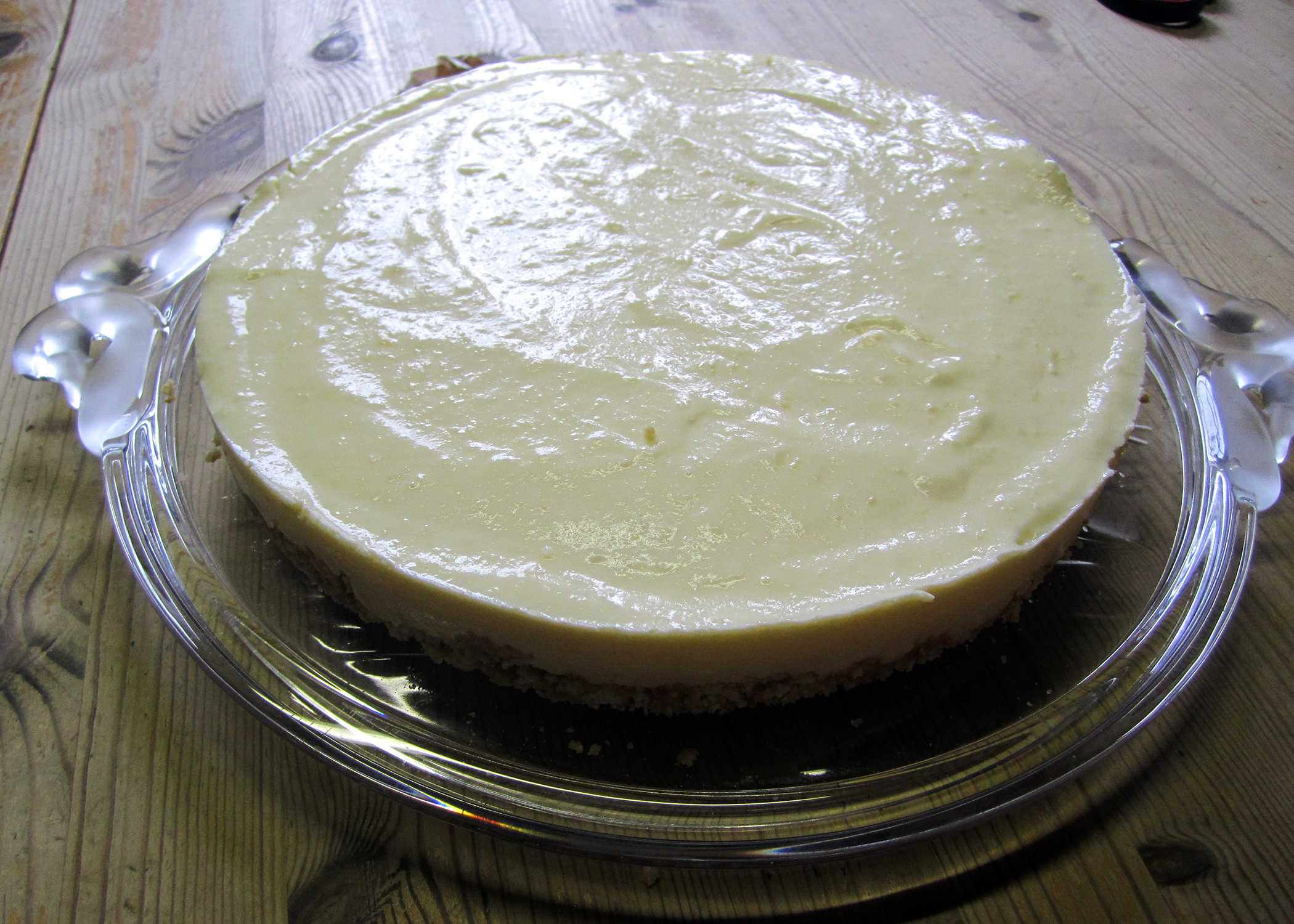 200g Rahm steif schlagen und mit der Joghurtmasse vermengen. Alles auf den Tortenboden streichen und mindestens fünf Stunden oder einfach über Nacht kalt stellen. Den Ring vorsichtig von der Torte lösen.
