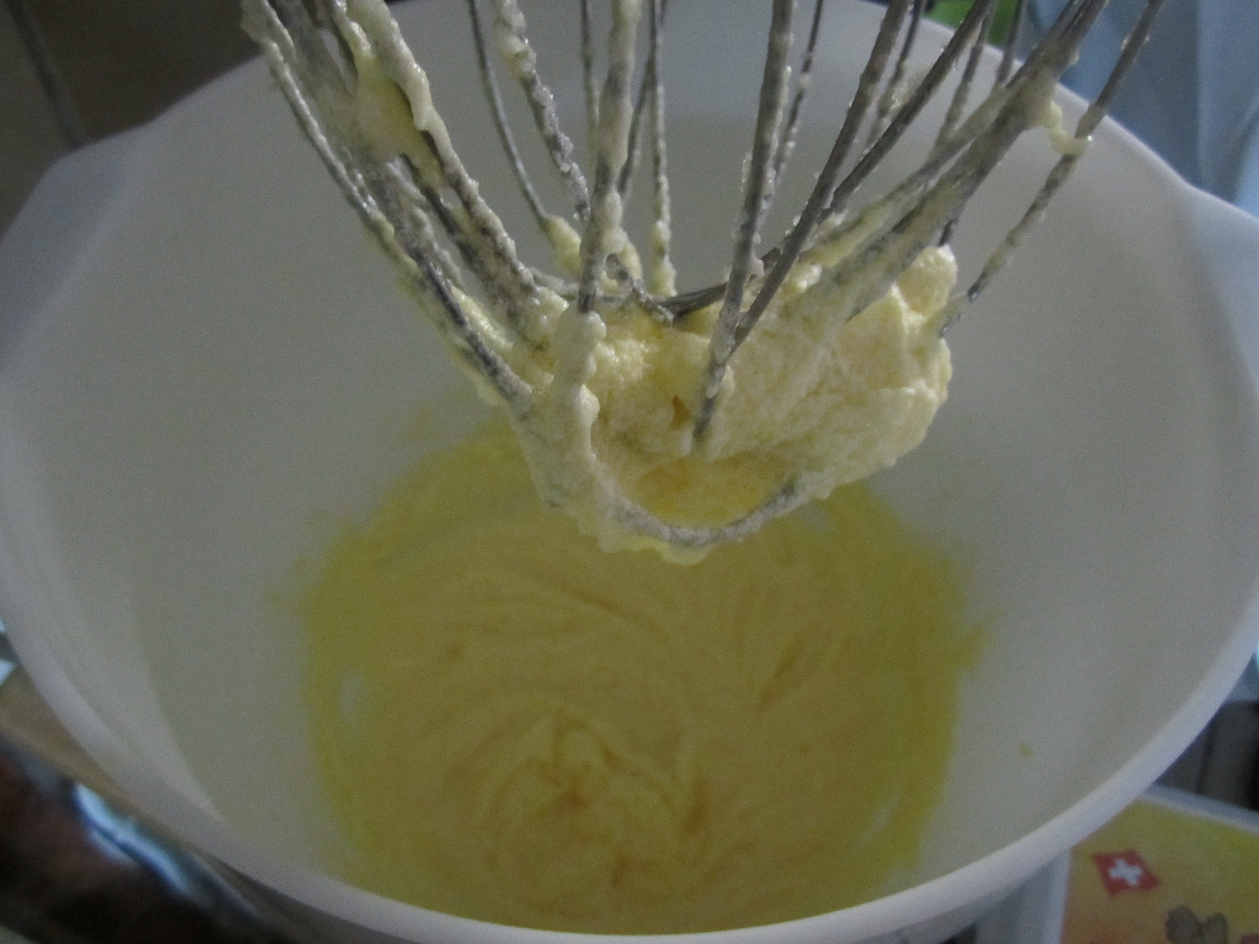 Als erstes den Backofen auf 175°C Umluft vorheizen und ein Muffinblech mit Papierförmchen auslegen. Den Zucker mit der Butter und dem Vanillearoma cremig rühren und die Eier nacheinander dazugeben.