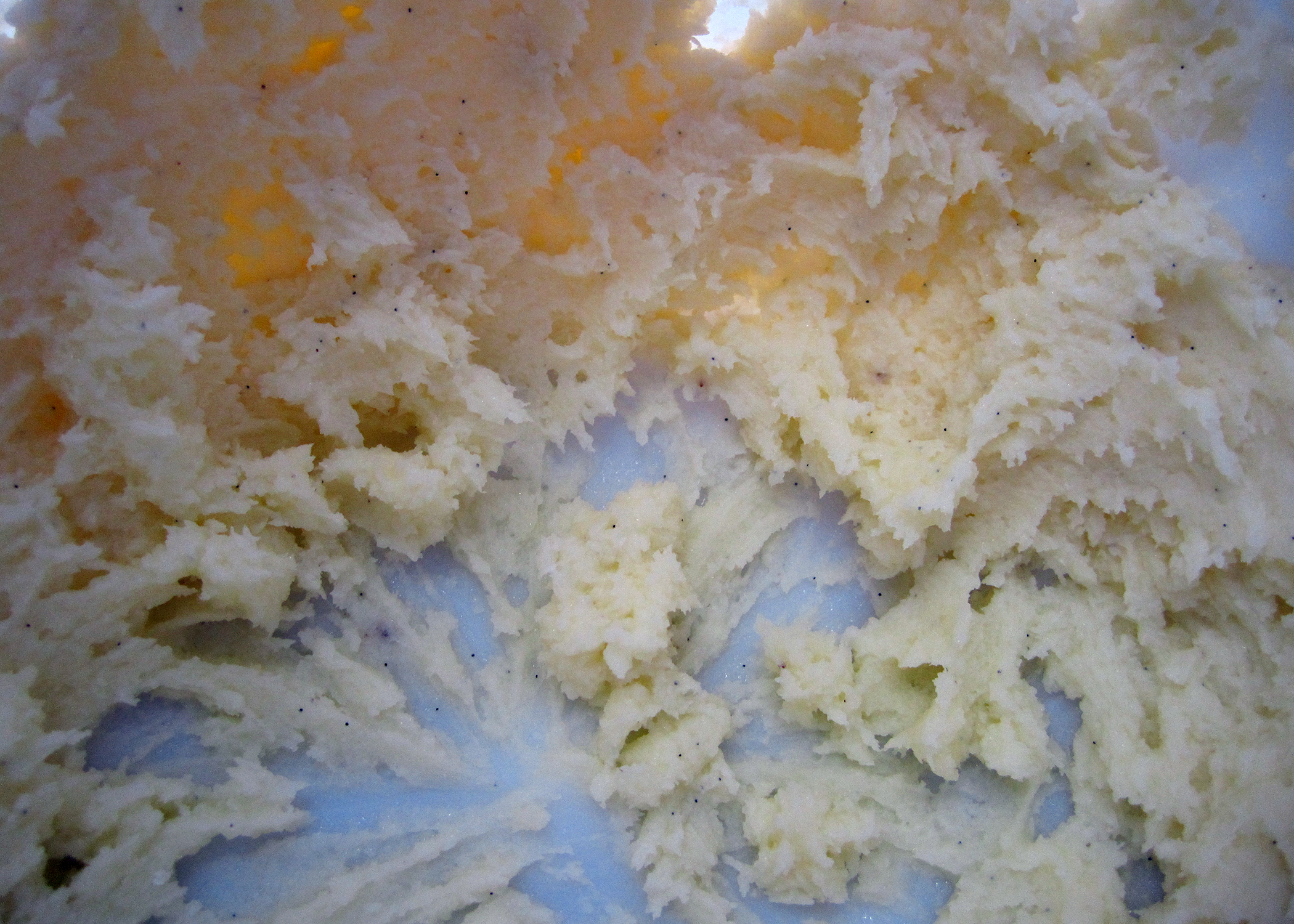 Für das Frosting die Butter kurz cremig rühren und den Puderzucker und den Vanillezucker unterrühren. Die Butter darf nicht zu weich oder zu hart sein, sonst wird die Creme nicht geschmeidig.