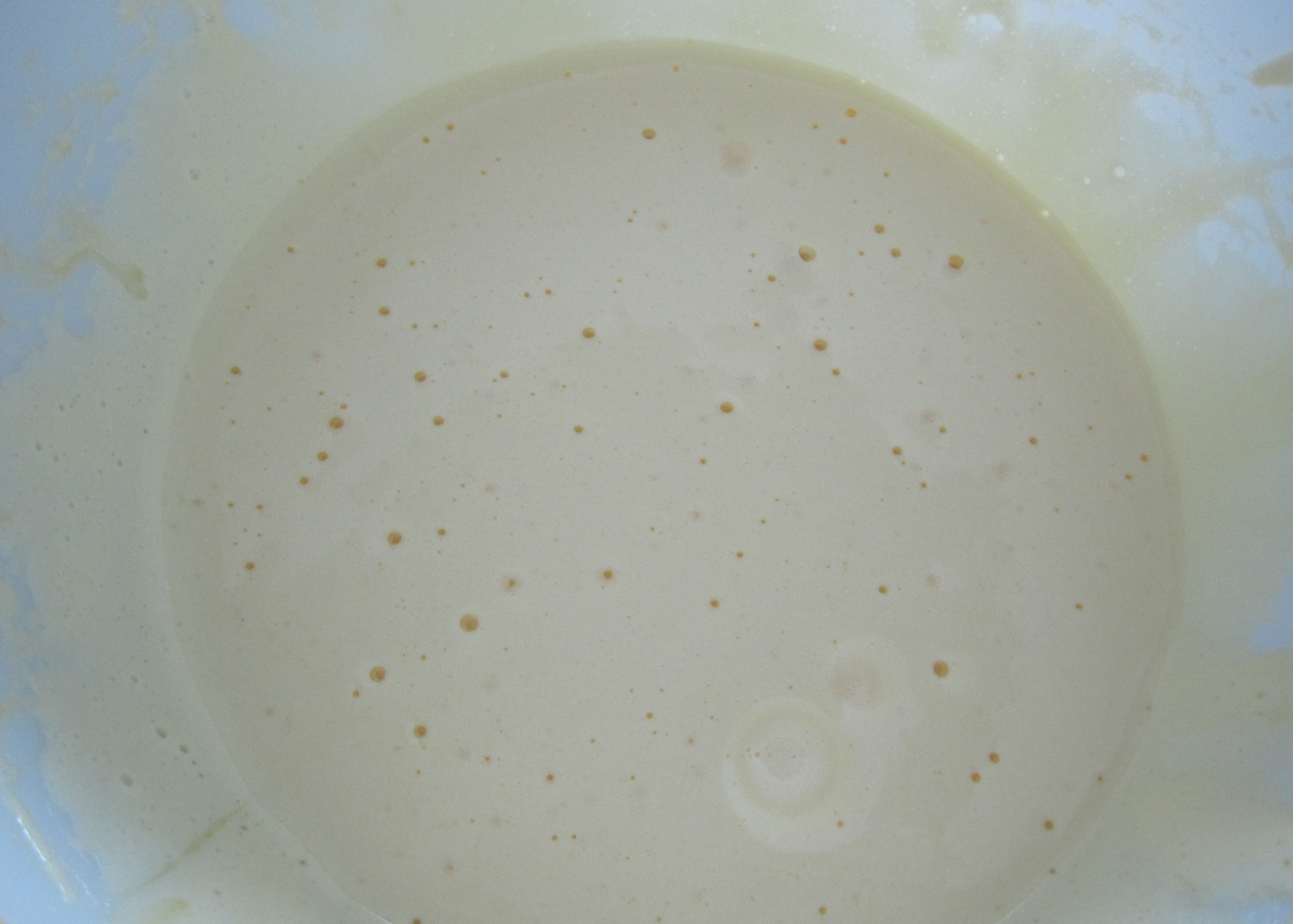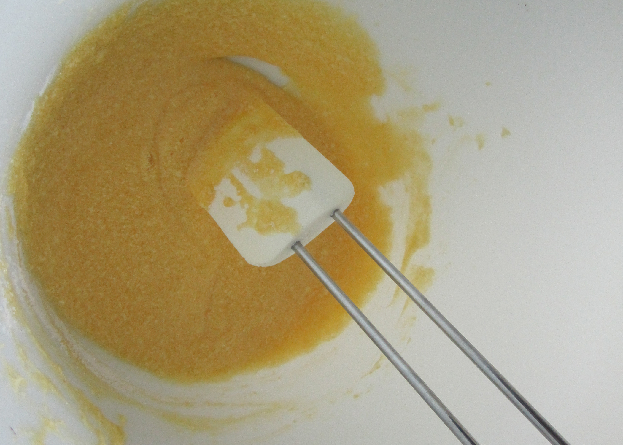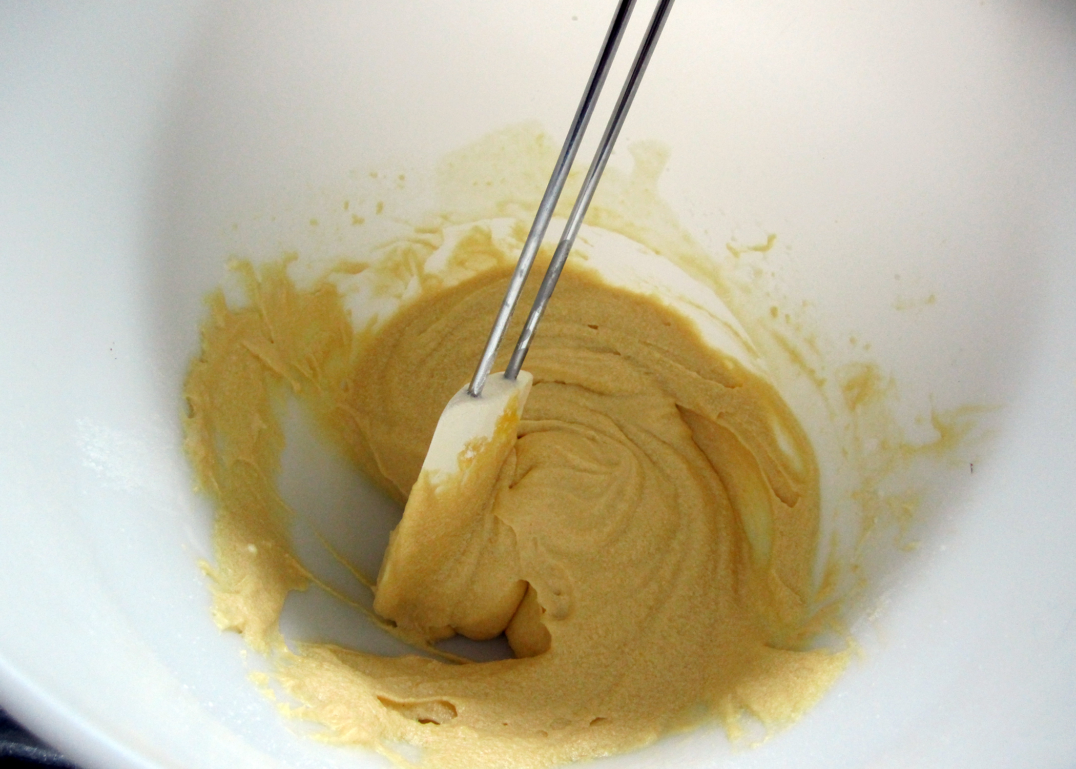 Das Mehl mit dem Backpulver vermischen und auf die Masse sieben. Rühren und darauf achten dass der Teig keine Klümpchen hat.