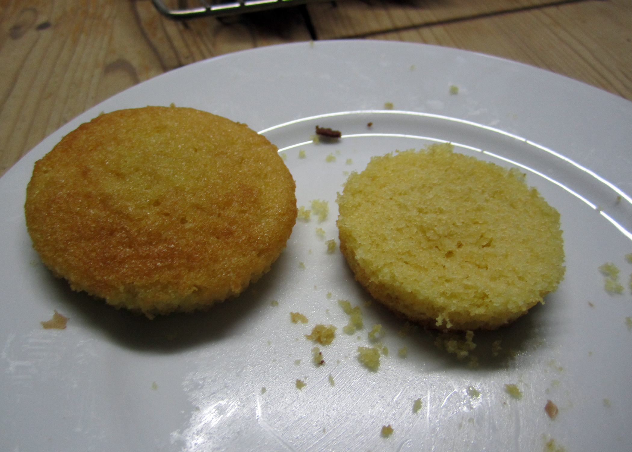 Die Masse auf die 11 Förmchen verteilen und in der Mitte des Ofens 10min backen. (Sollten nicht braun werden!)