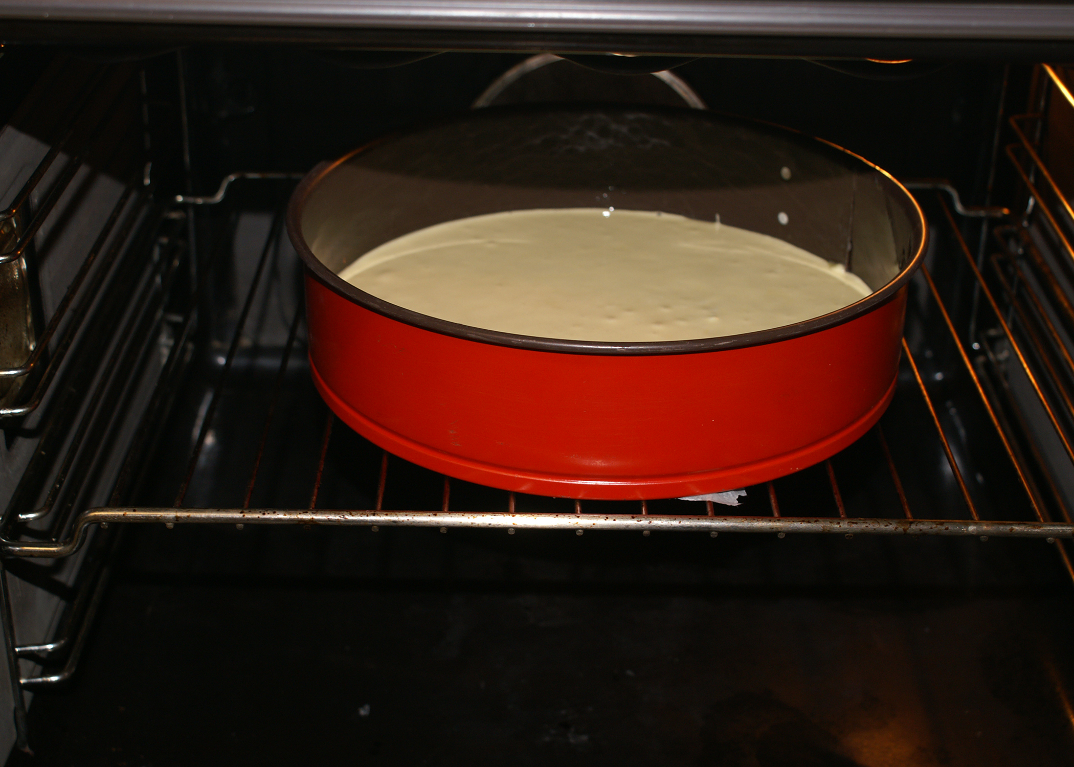Den Biskuitdeckel darauflegen und mindestens 6h oder über Nacht kühl stellen.