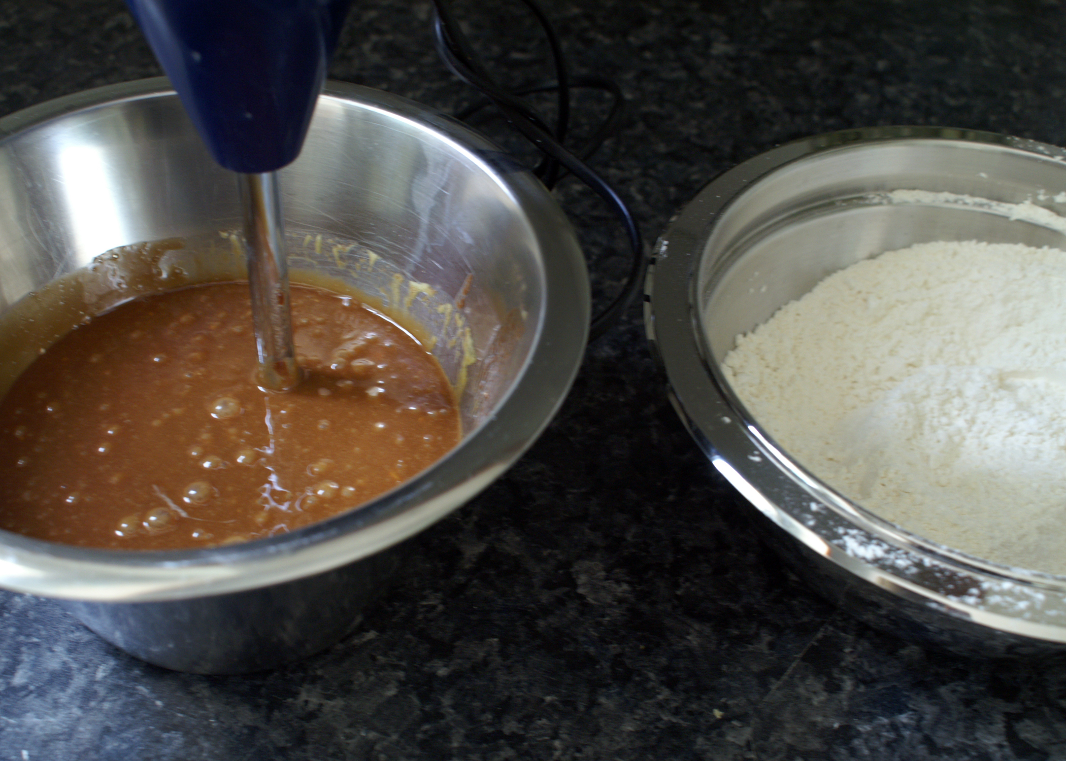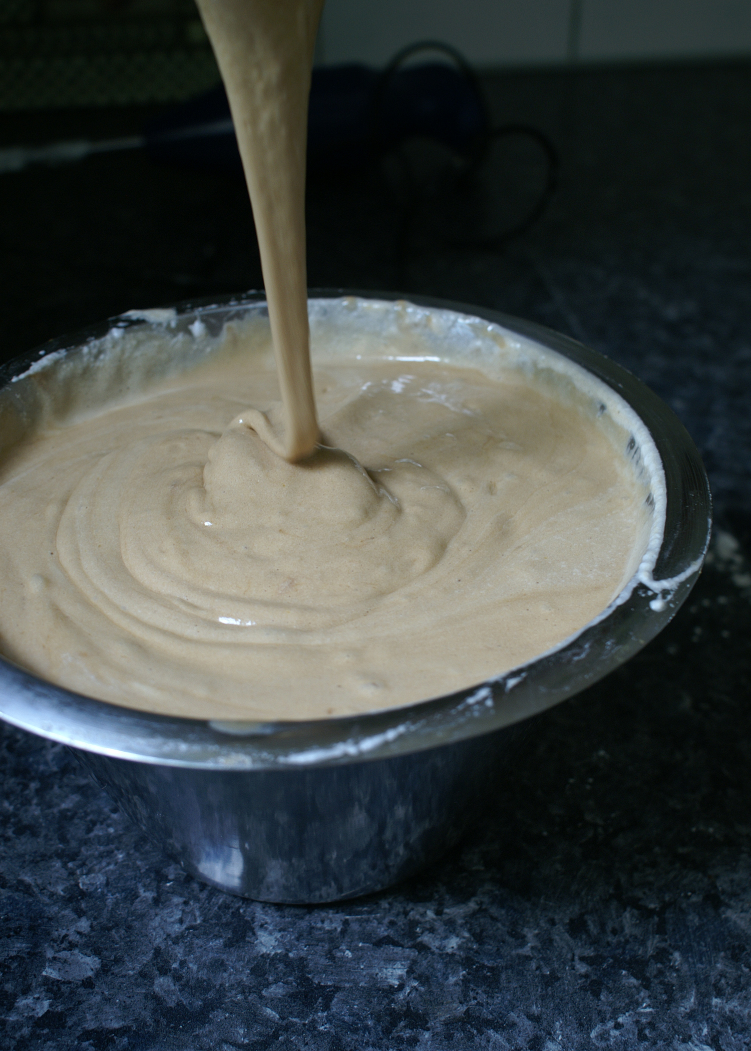 Das Mehl und das Backpulver in einer weiteren Schüssel mischen und nach und nach unter die Masse heben.