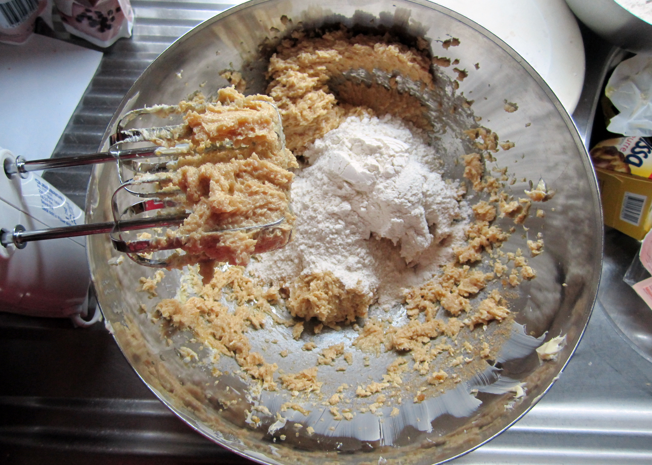 Zuerst die Margarine kurz rühren, bis sich kleine Spitzchen bilden. Anschliessend brauner und weisser Zucker, Ei und Vanilleextrakt zugeben und gut verrühren. Das Mehl mit Backpulver, Salz und Natron vermischen und nach und nach unter die helle Masse rühren.