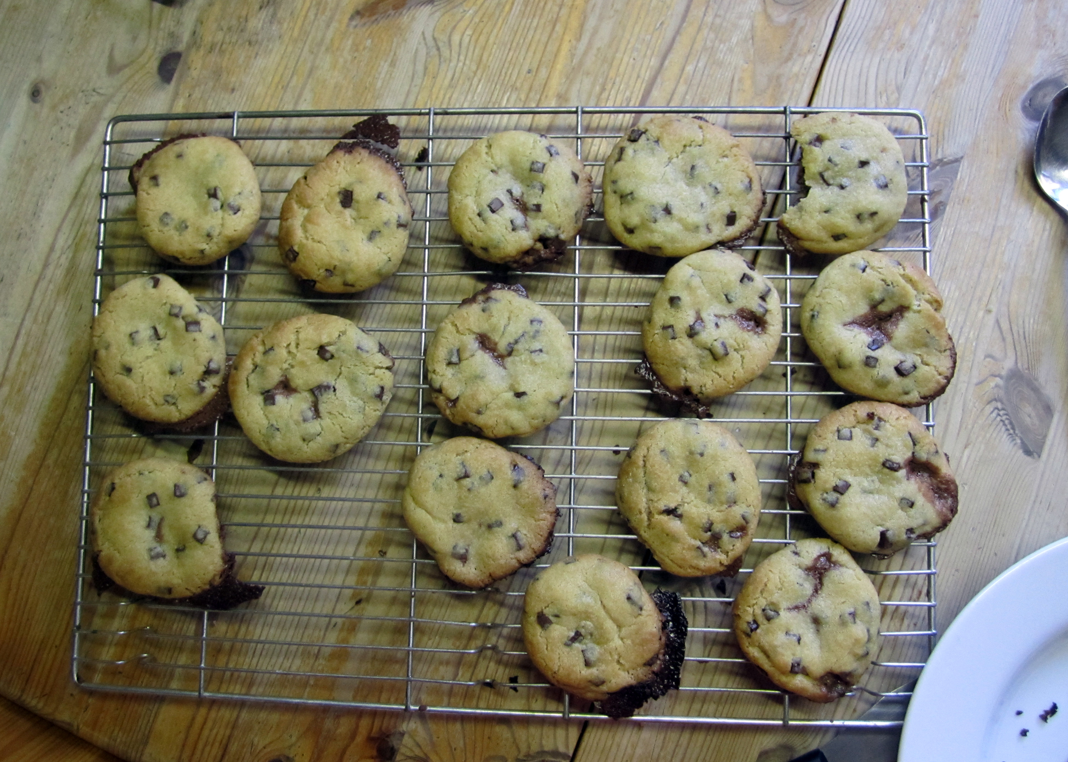 Es ist normal das bei einigen Cookies etwas Füllung herauslaufen wird, was jedoch nicht schlimm ist. Wenn die Cookies ausgekühlt sind, kann die herausgelaufene Schokolade ohne Probleme abgebrochen werden.