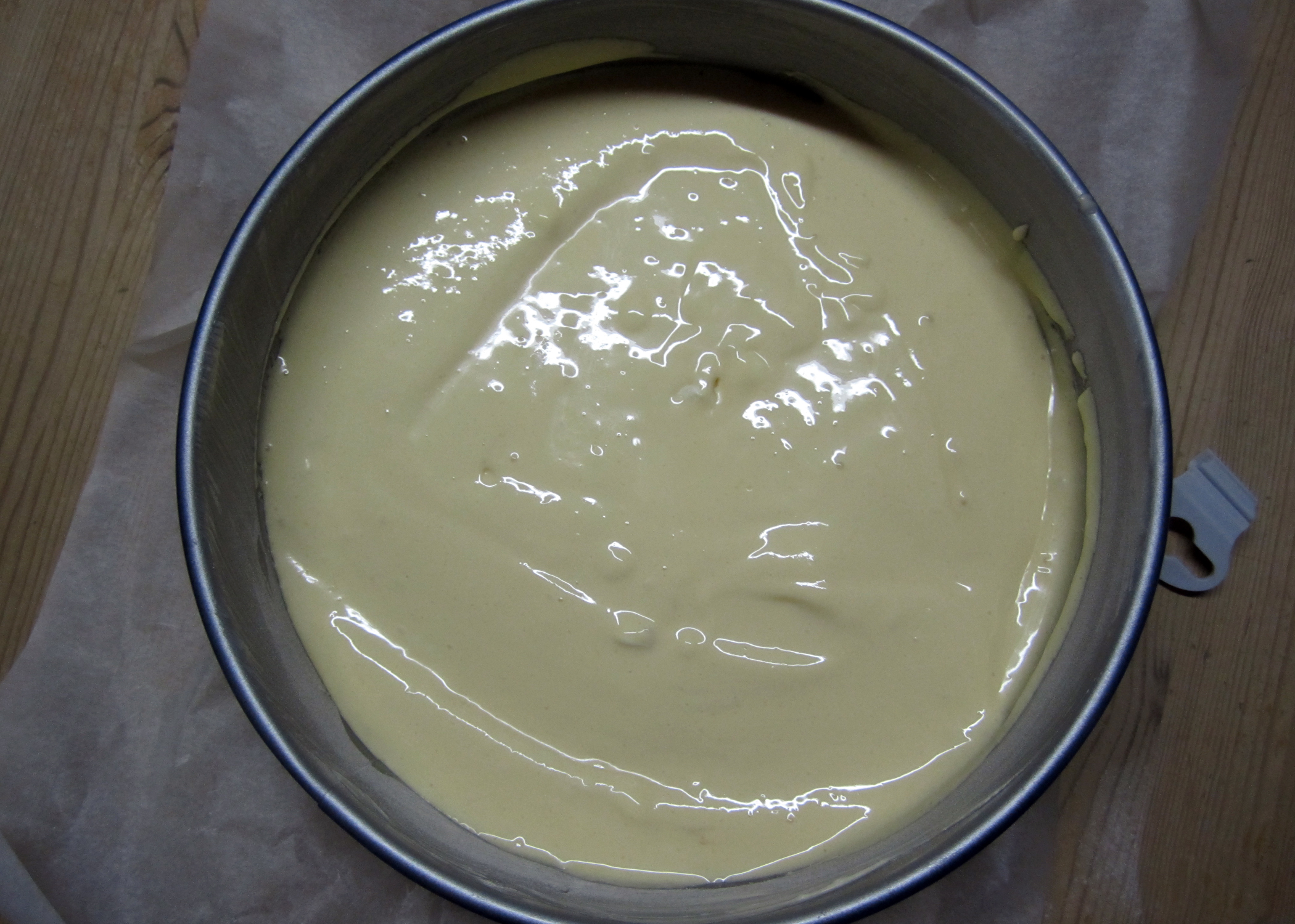 Die Masse in die Springform füllen und 55-60min backen. Es ist normal dass der Cheesecake nach dem Backen sofort zusammenfällt, also keine Panik. Nach dem Auskühlen den Kuchen auf ein Gitter stürzen und bis zur Weiterverarbeitung einfrieren.