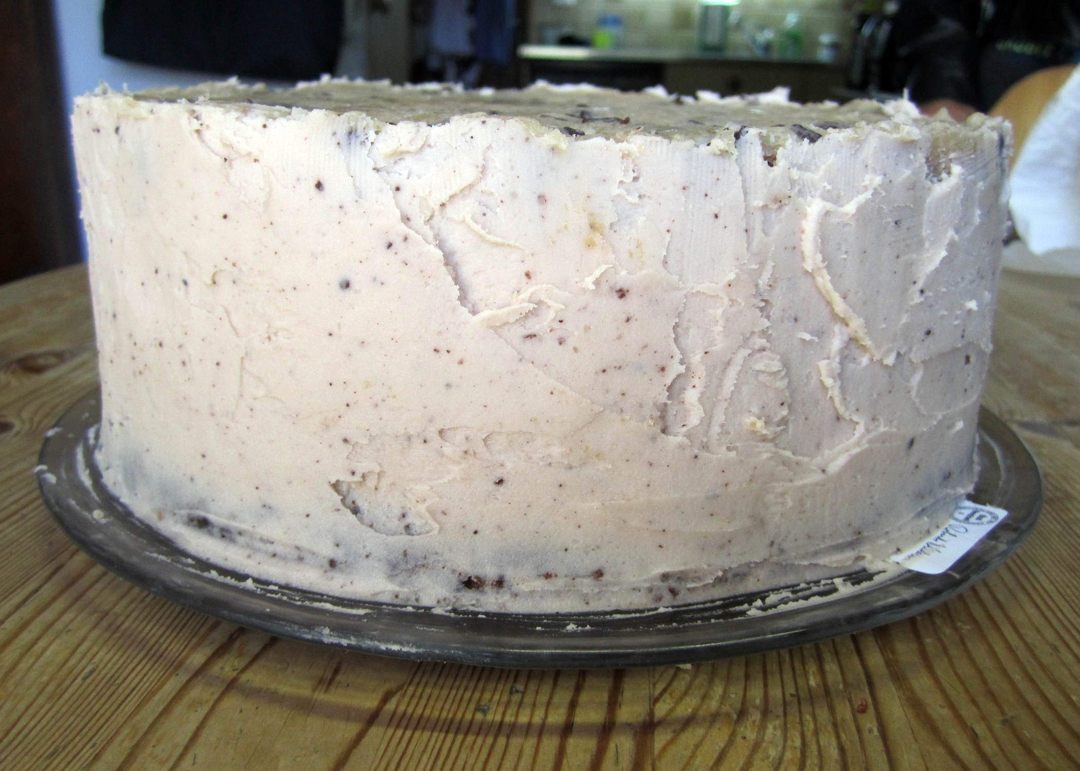 Für die Zusammensetzung des Kuchen die beiden eingefroreren Schichten aus dem Tiefkühler nehmen und dann das Buttercremefrosting zubereiten. Dazu die Butter sehr gut mit dem Puderzuckerverrühren.