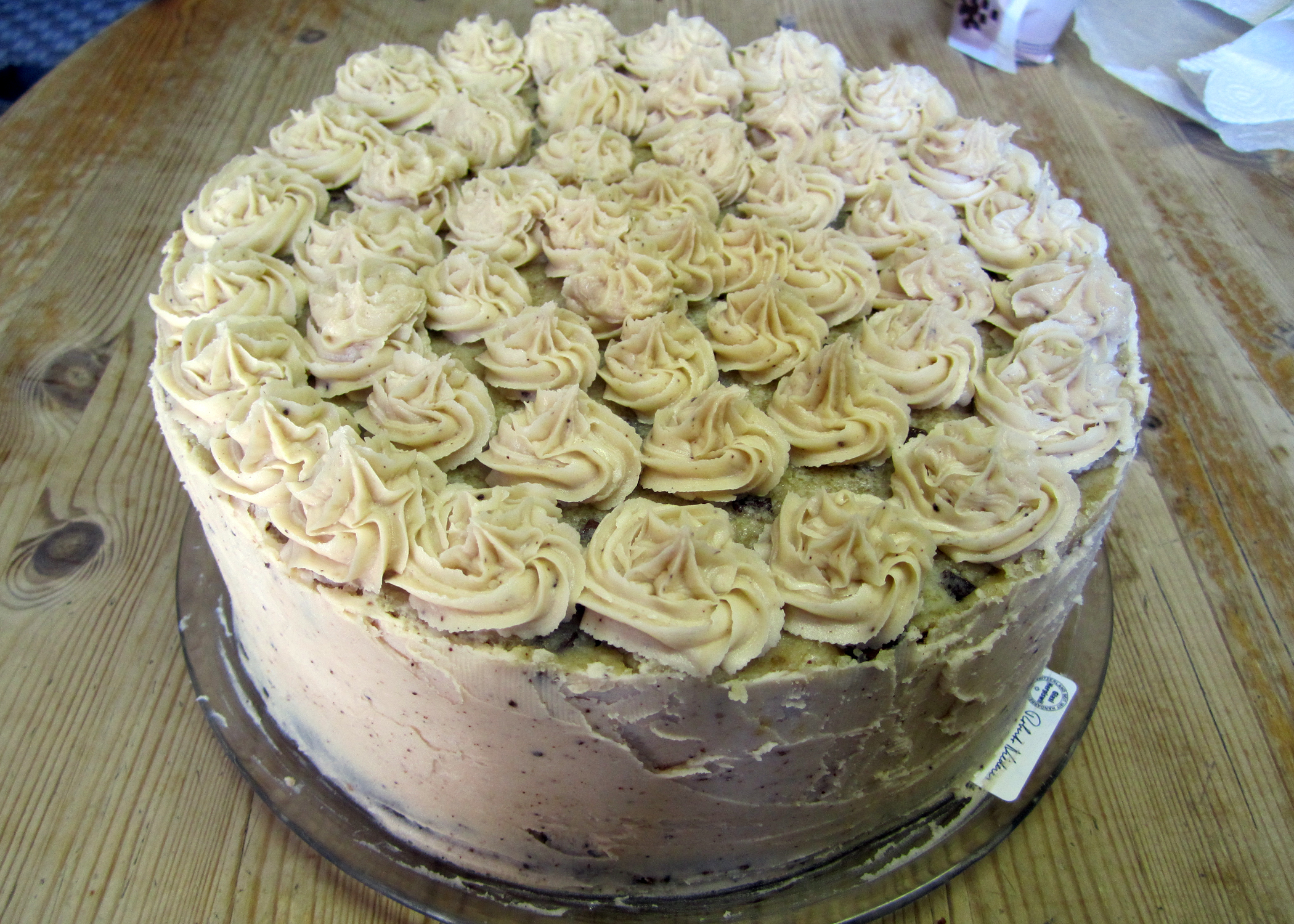 Den Kuchen bis zum Servieren kühl stellen. Er ist wahnsinnig mächtig, darum unbedingt kleine Stücke abschneiden.