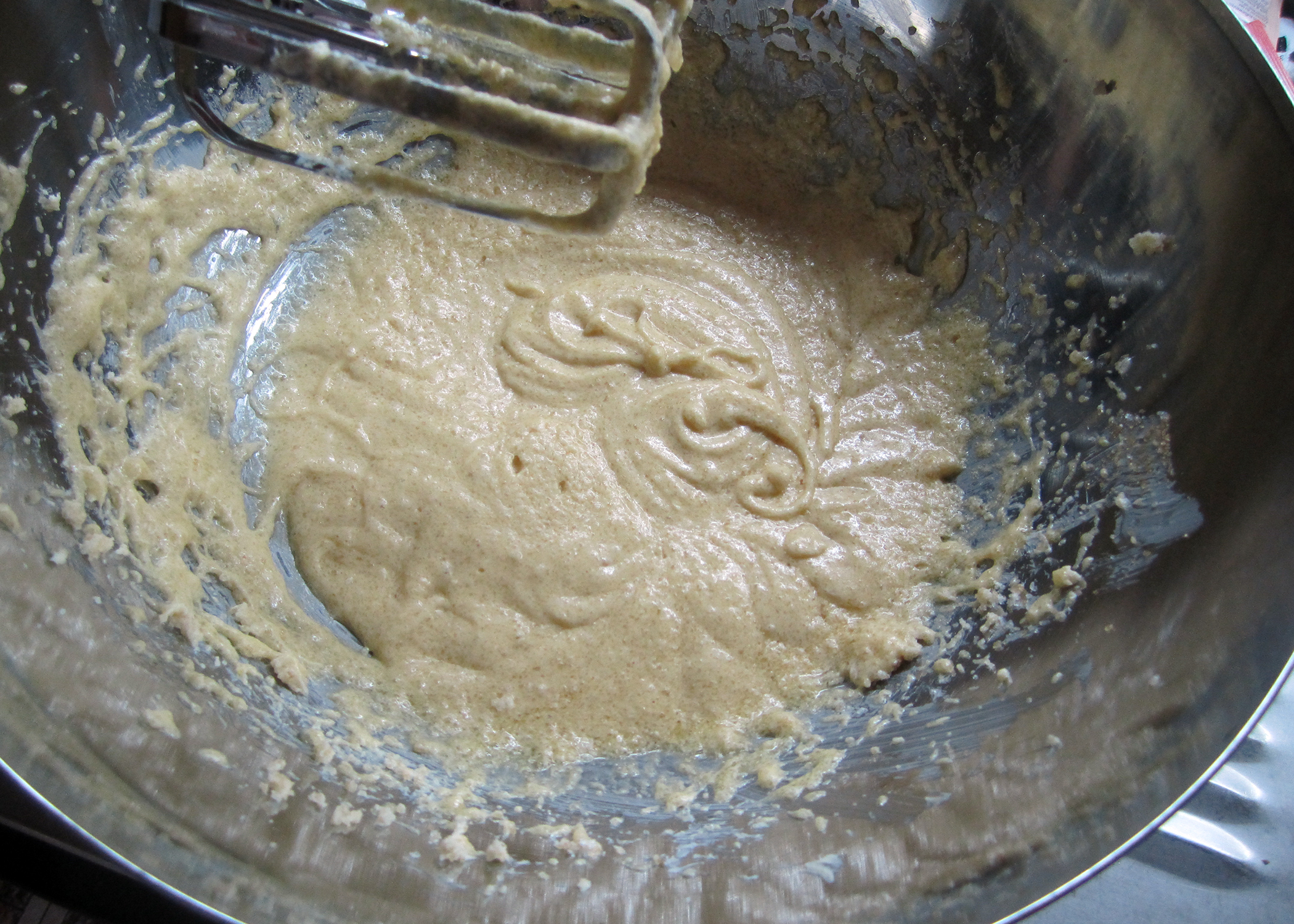 Für den Cookieteig Margarine, brauner und weisser Zucker rühren bis sich Spitzchen bilden. Dann kurz Vanilleextrakt und die Eier unterrühren.