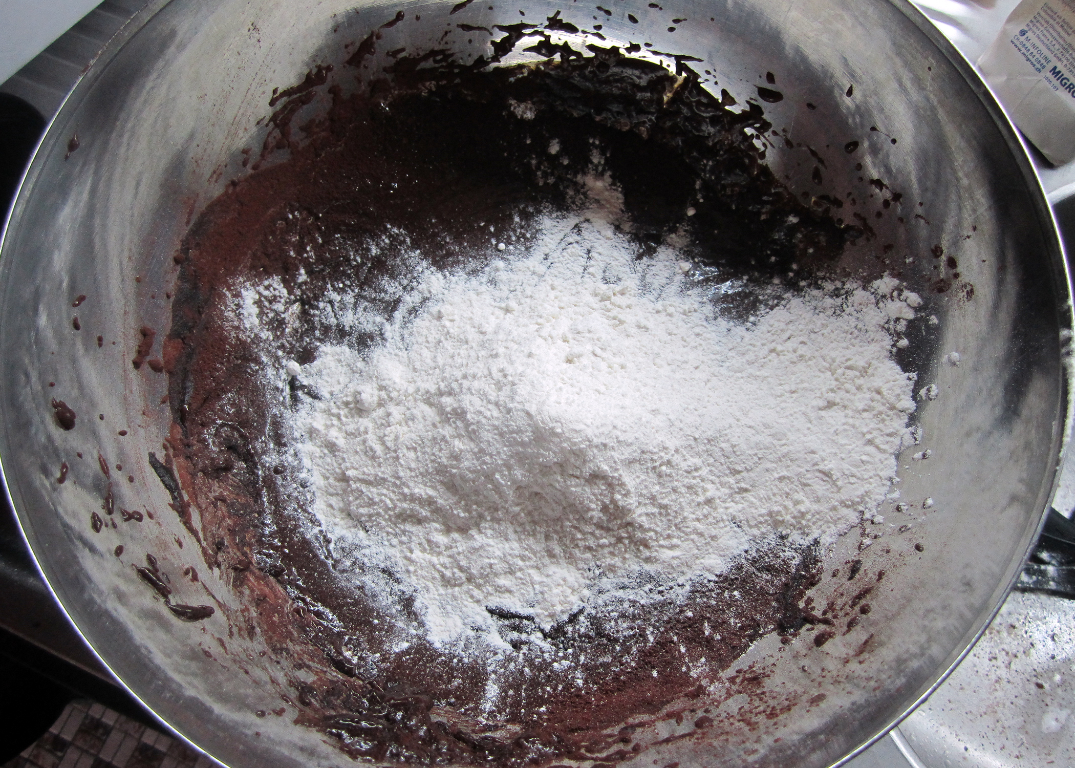 Anschliessend Kakaopulver und Salz daruntermischen und das Mehl vorsichtig unterziehen.