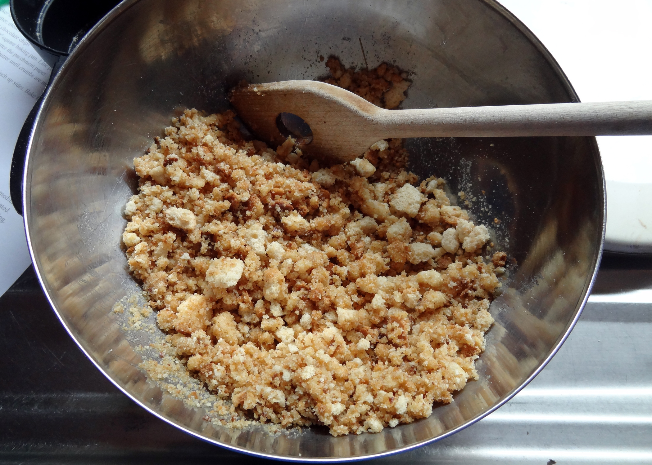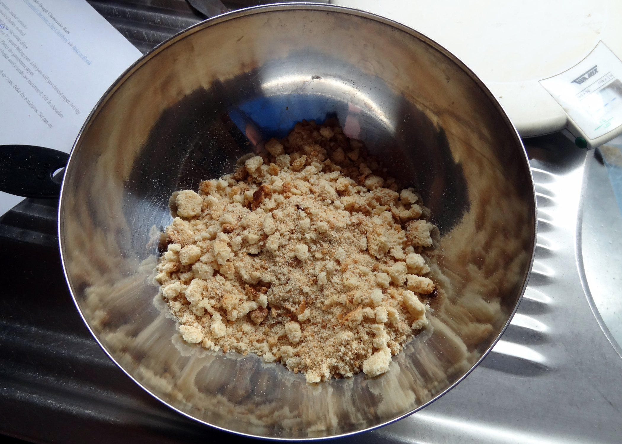 Für den Boden sämtlichen Zwieback in einem Gefrierbeutel zerbröseln und in eine kleine Schüssel geben.