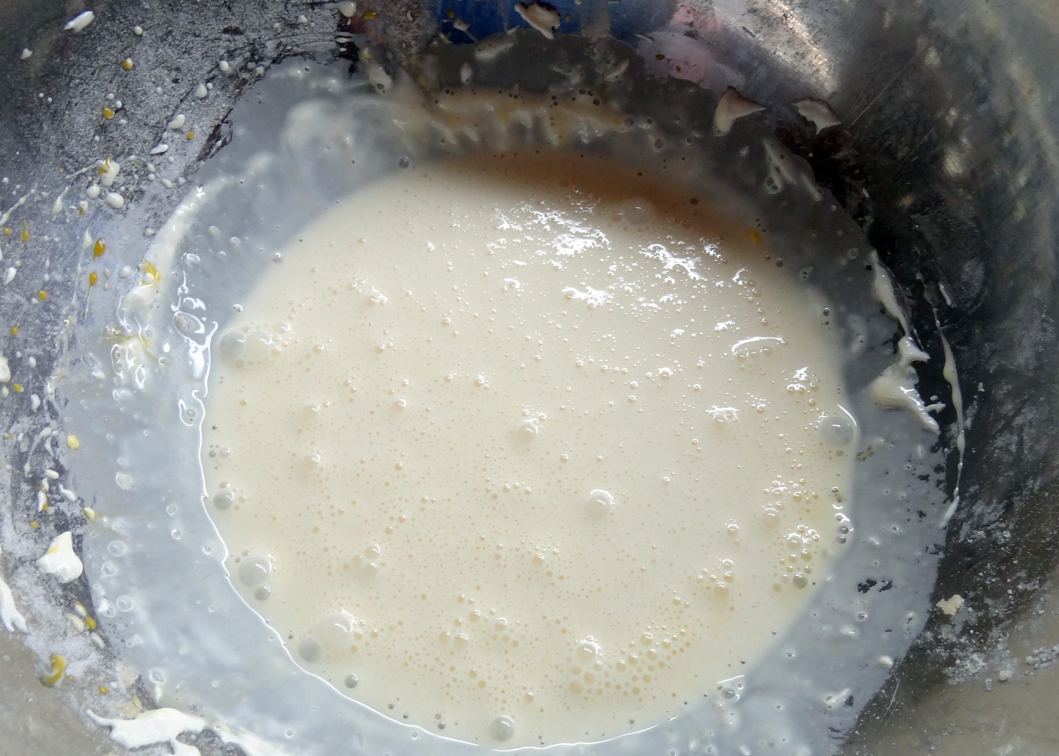 Das Mehl auf niedriger Stufe unterrühren bis alles eingearbeitet ist.