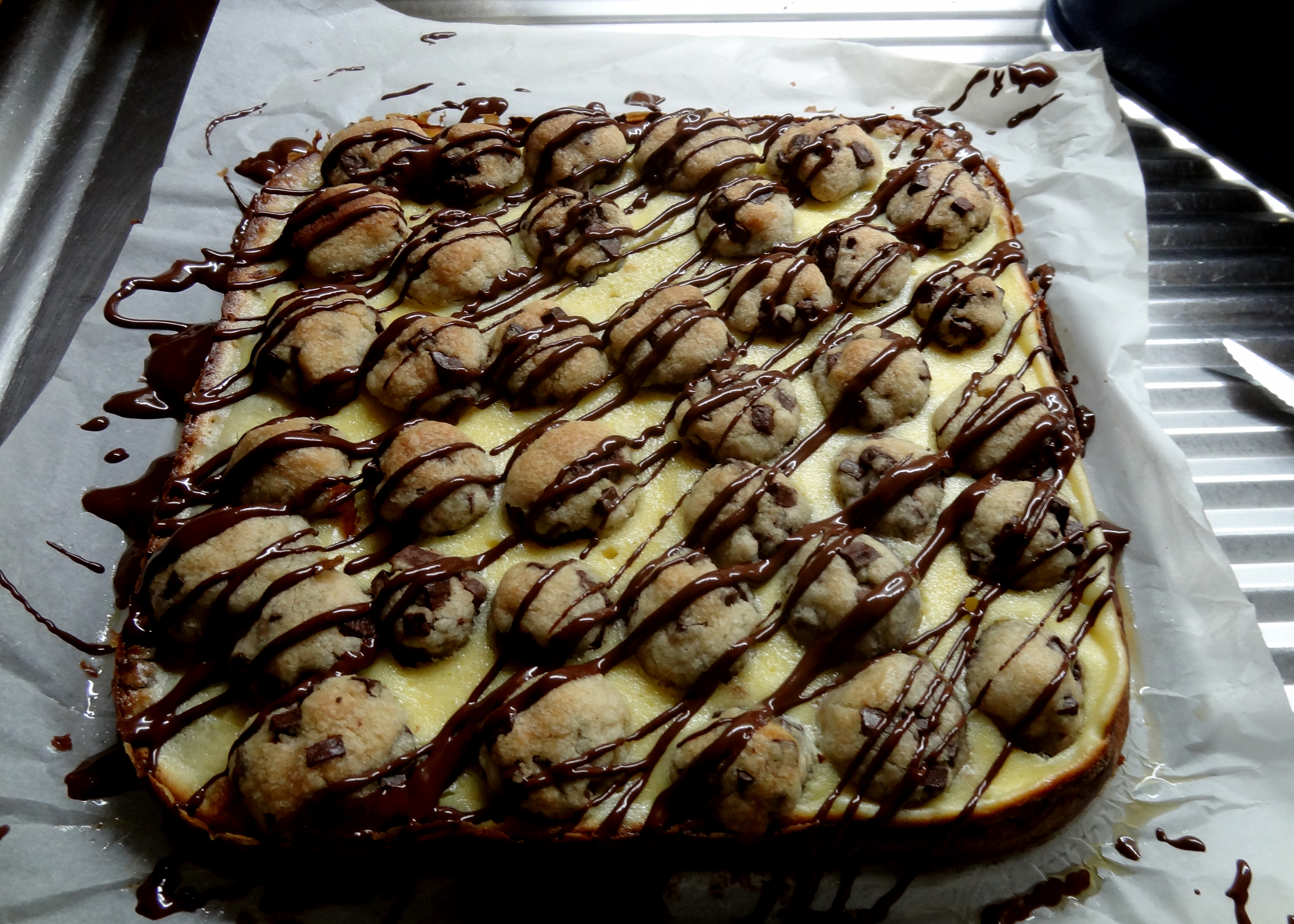 Nun die Cookie Junks in Reihen gleichmässig auf die Cheesecakemasse legen. Das Ganze 30 Minuten lang backen und vollständig auskühlen lassen.