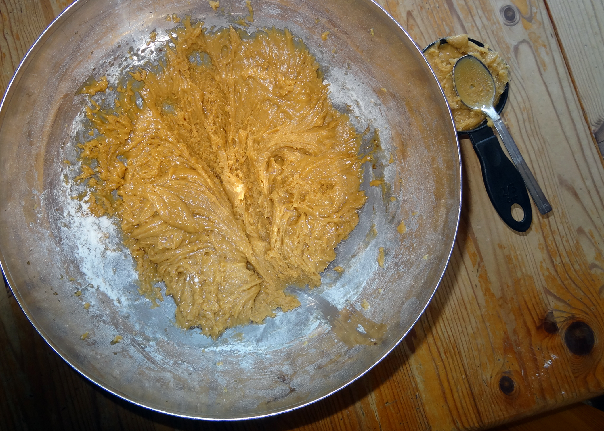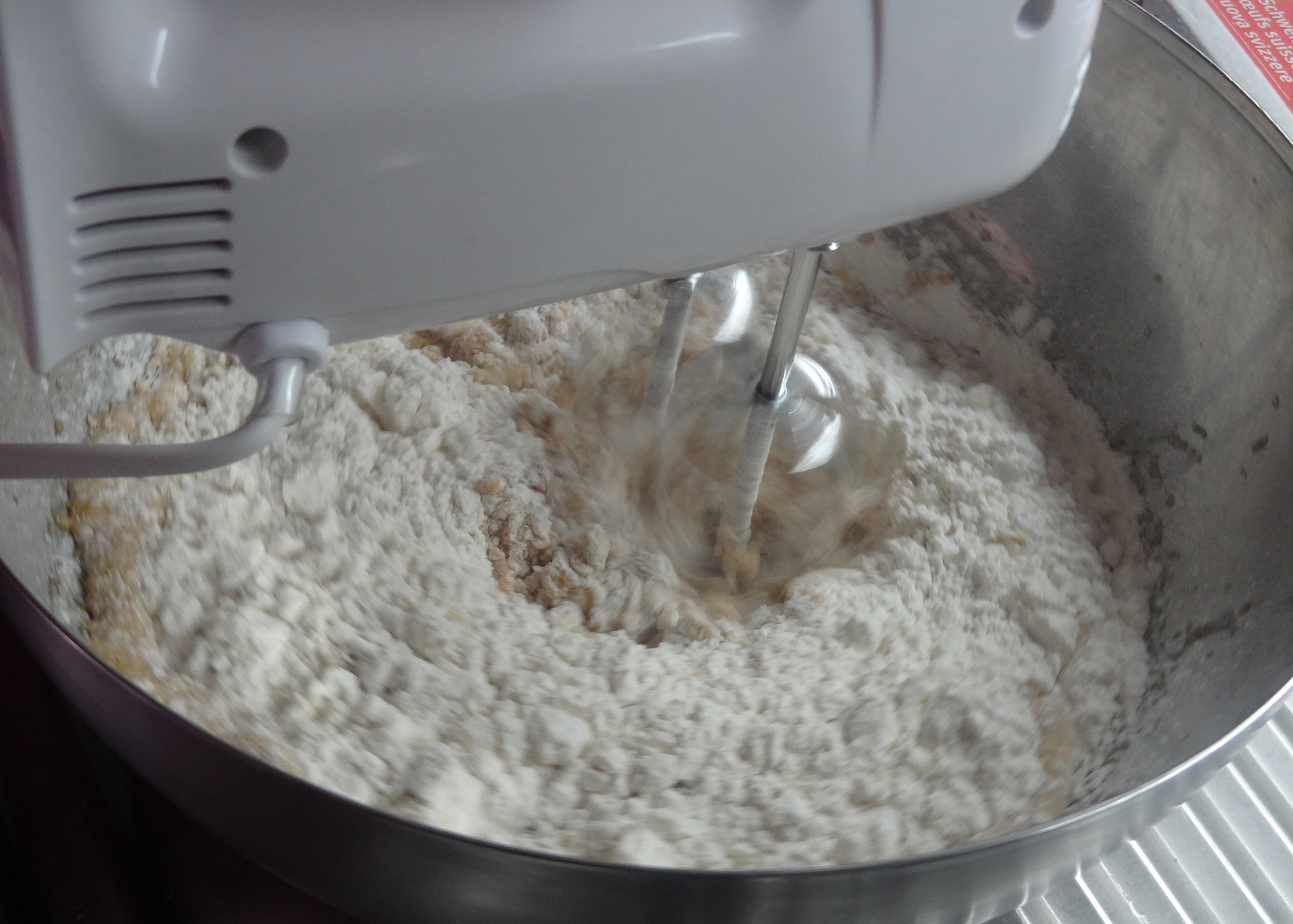 Anschliessend Mehl, Salz und Natron vermischen und nach und nach unterrühren.