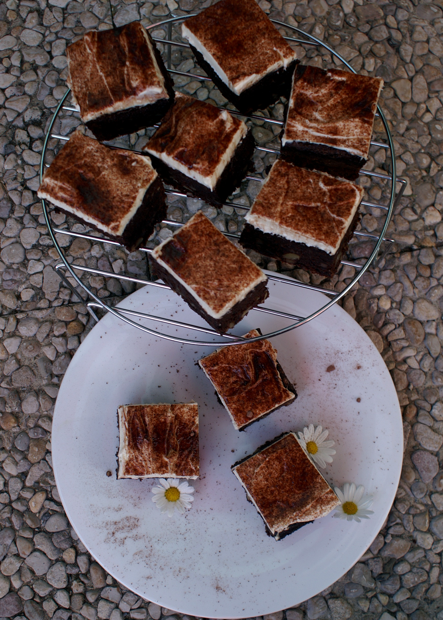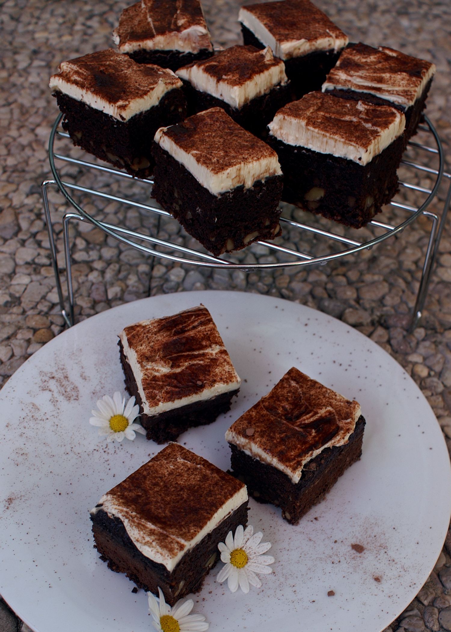 Bei diesen Leckerbissen handelt es sich eigentlich um stinknormale Brownies. Die Frischkäseschicht macht sie jedoch zu etwas Besonderem und gibt ihnen einen leckeren Geschmack, der nicht jedem bekannt ist. Obwohl auch Kaffeepulver in den Zutaten enthalten ist, kann man dieses kaum herausschmecken. Wenn die Brownies nicht zu lang im Ofen gelassen werden, dann sind sie leicht feucht. Einfach ein Muss für ein traditionelles Kaffeekränzchen.