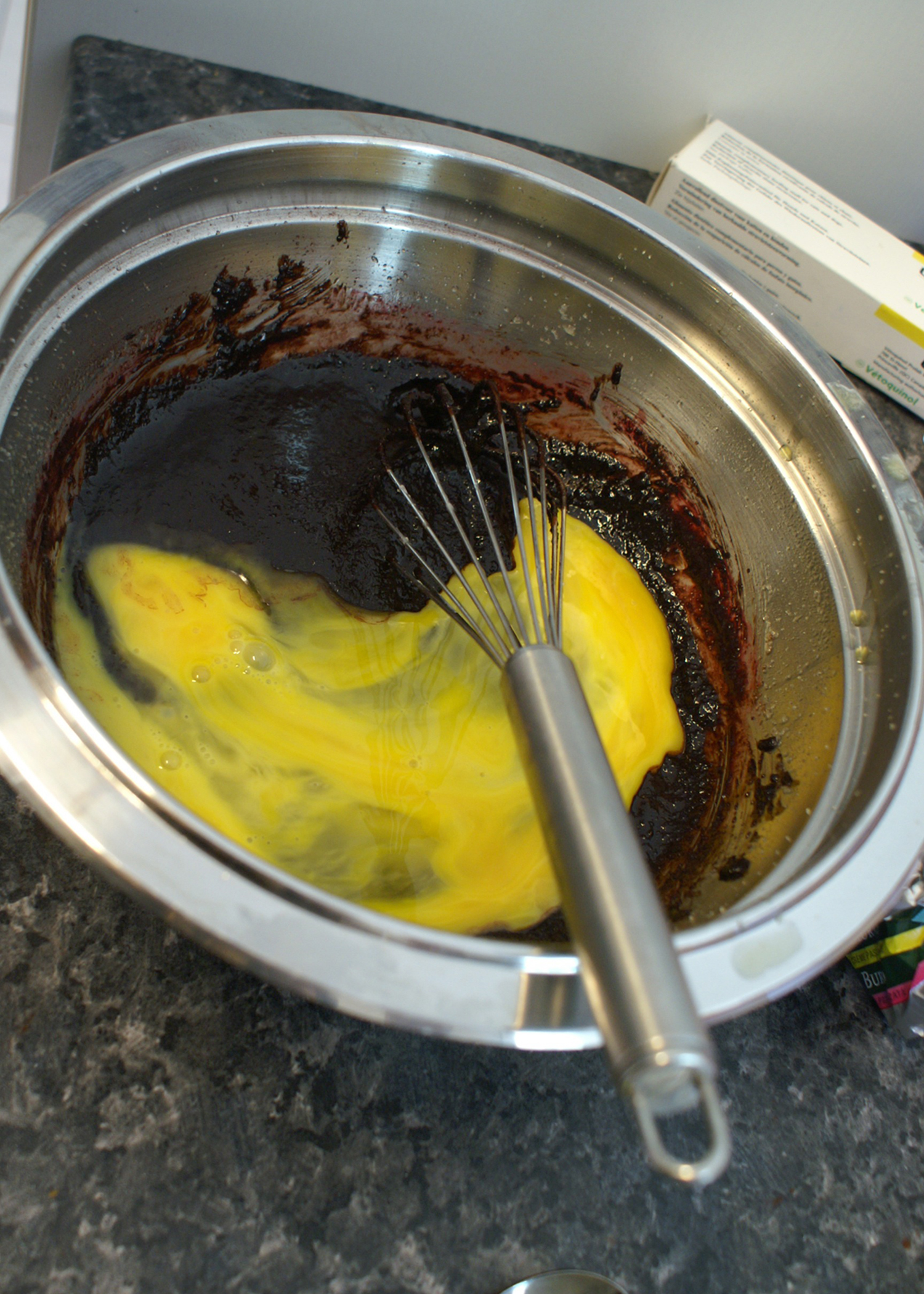 In einer zweiten Schüssel die Eier mit einer Gabel verquirlen und zur Buttermischung geben. Mehl und Backpulver mischen, auf die Masse sieben und von Hand unterheben.