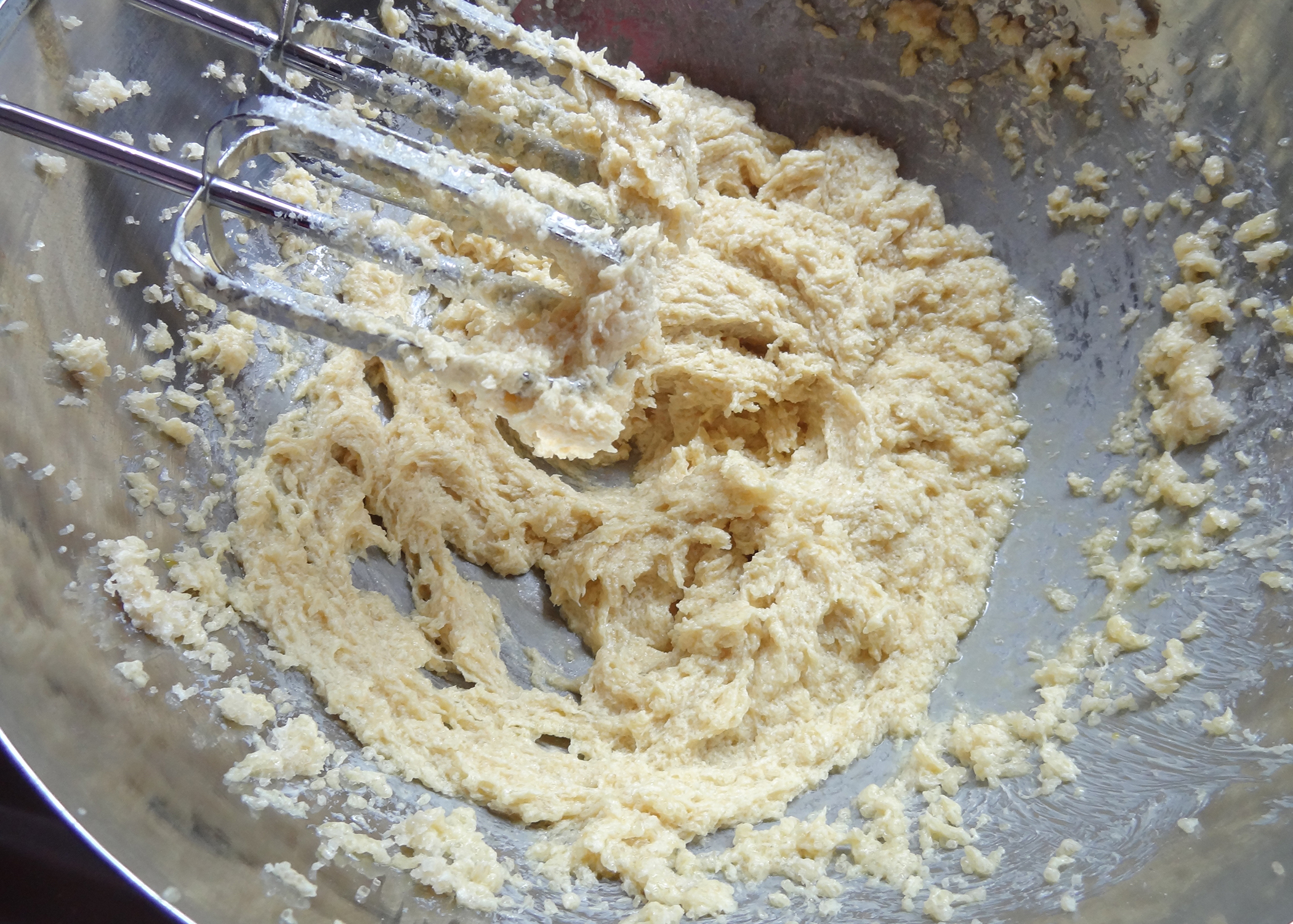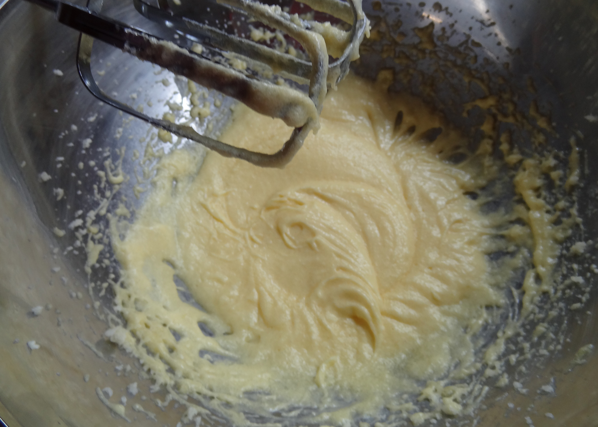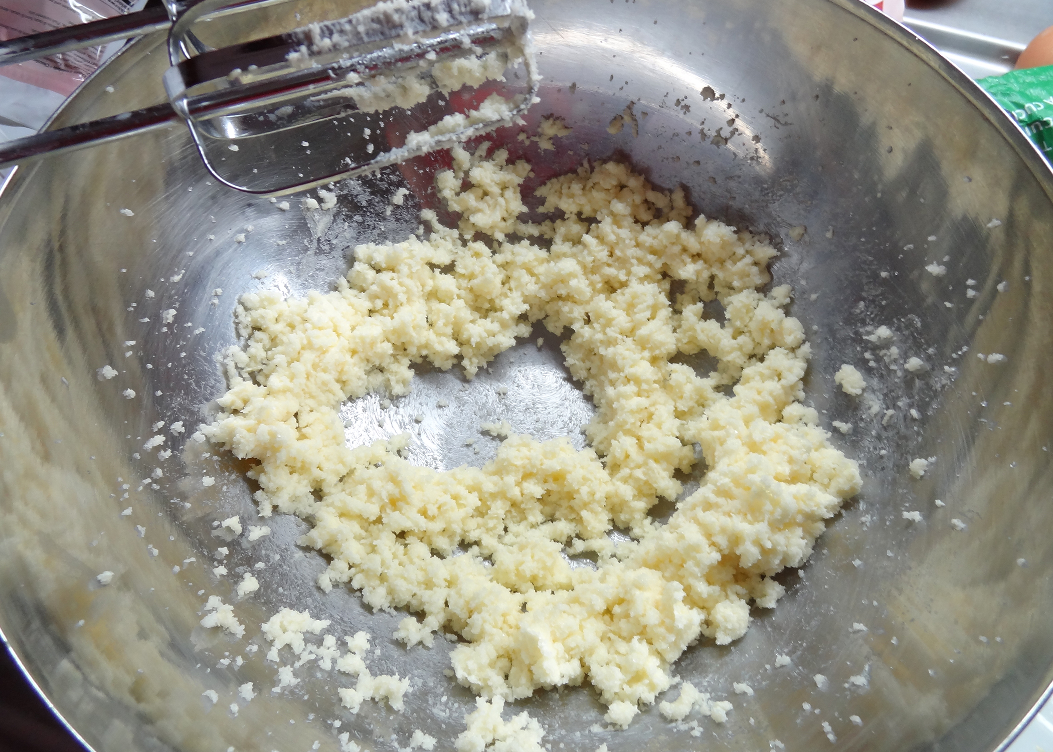 Jetzt Butter, Zucker und Vanillezucker verrühren. Eier dazugeben und unterrühren.