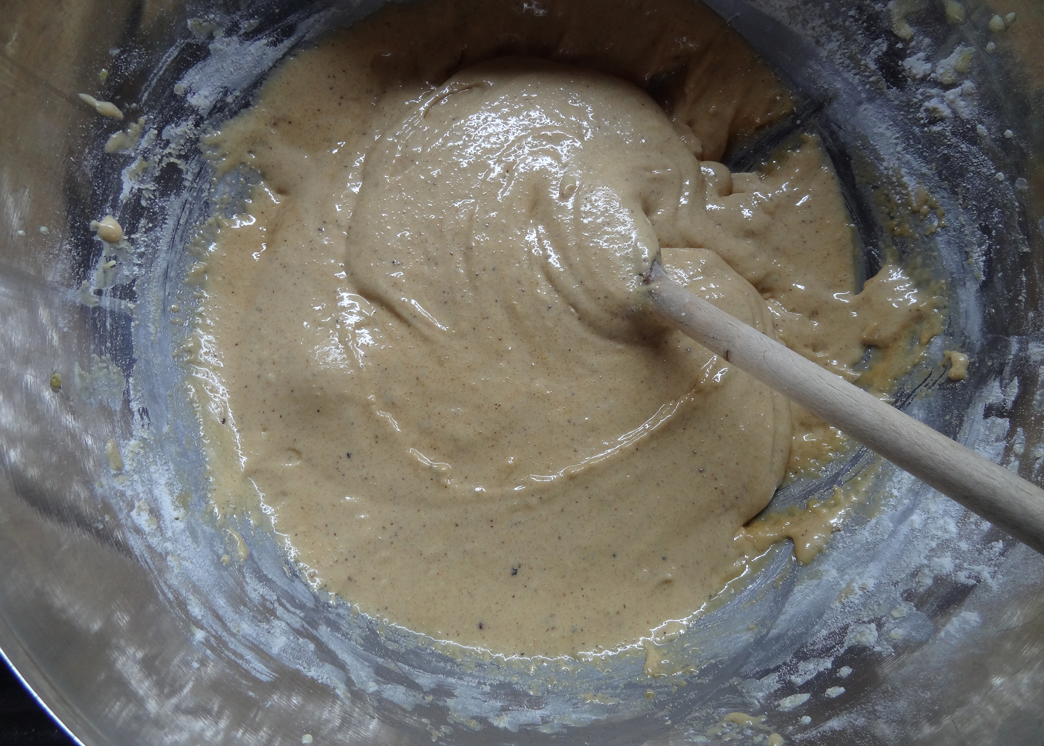 Anschliessend Mehl und Backpulver auf die Masse sieben und vorsichtig unterheben.