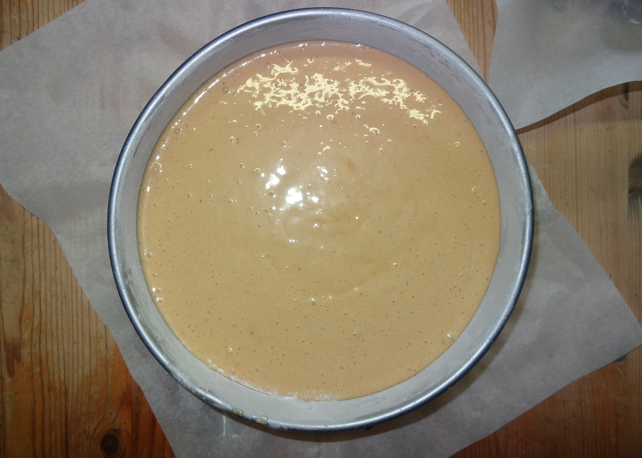 Den Backofen auf 175°C vorheizen. Eine Springform (ø24cm) gut einfetten und bemehlen.