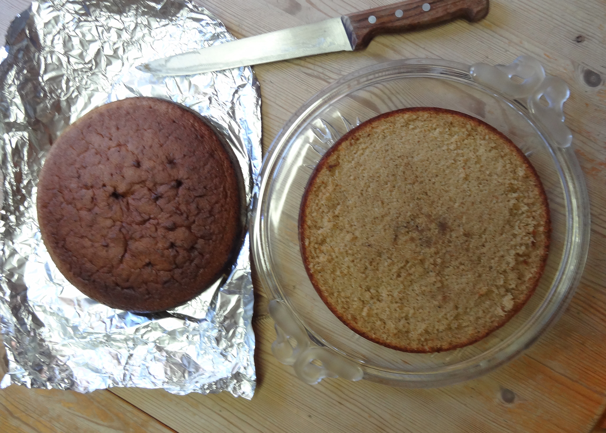 Den Teig in die Springform füllen und für ca. 50 Minuten backen(kann variieren). Das Biskuit wird auch beim Herausnehmen etwas „wabbelig“ aussehen, bei der Stäbchenprobe sollte jedoch nichts hängen bleiben. Nach dem Backen vollständig auskühlen lassen. (am Besten über Nacht)