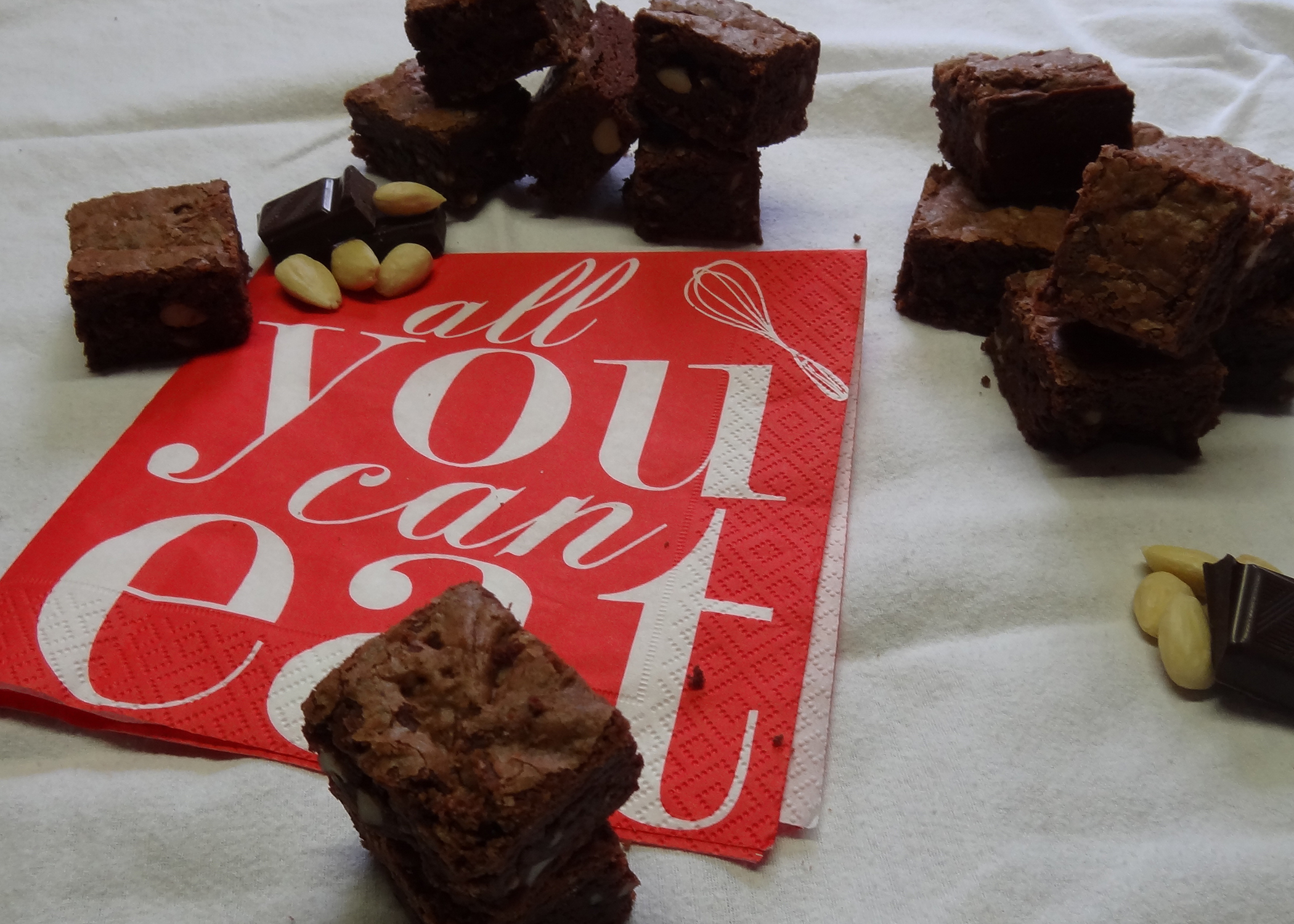 Nein, es muss nicht immer das komplizierteste, neueste, oder aufwändigste Rezept sein, dass alle begeistert. Darum haben wir dieses Mal ein paar klassische Schokoladenbrownies für euch. Innen sind sie noch feucht, den nötigen Biss verleihen ihnen ein paar Mandelstücke. Man muss sie einfach lieben, weil sie so simpel, so schokoladig – einfach so gut sind.