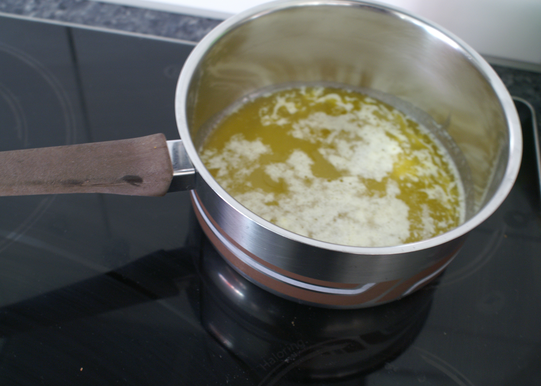 Für die Quarkmasse die Butter in einer Pfanne schmelzen.
