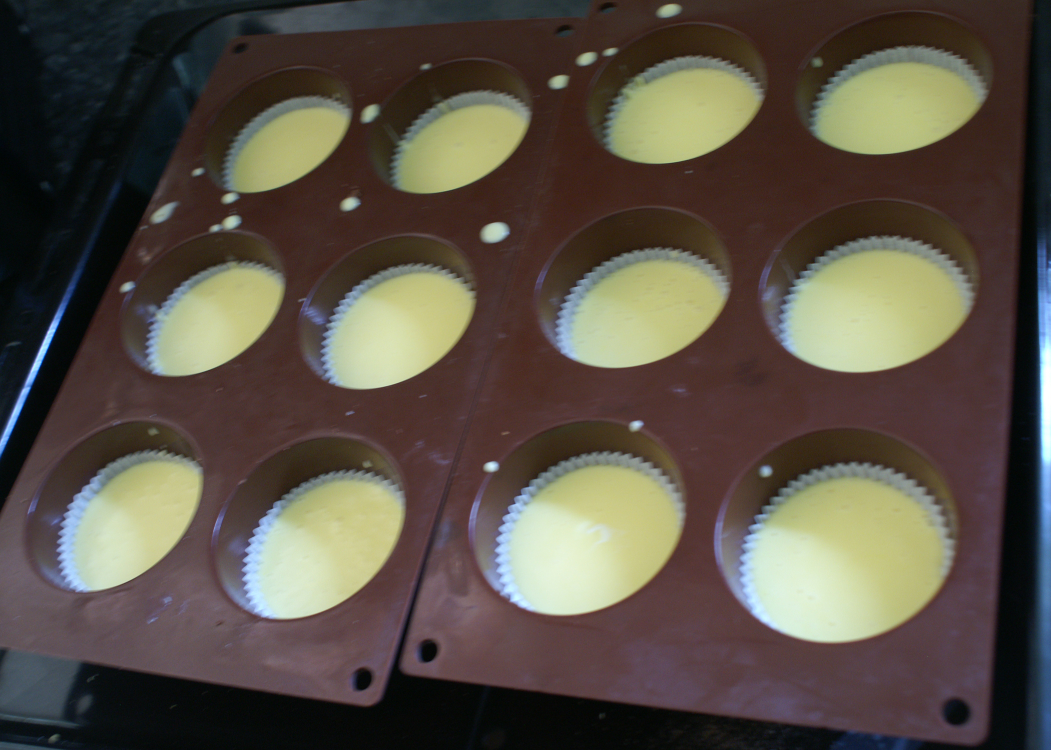 Den Backofen auf 175°C Umluft vorheizen und ein Muffinblech mit Papierförmchen auslegen.