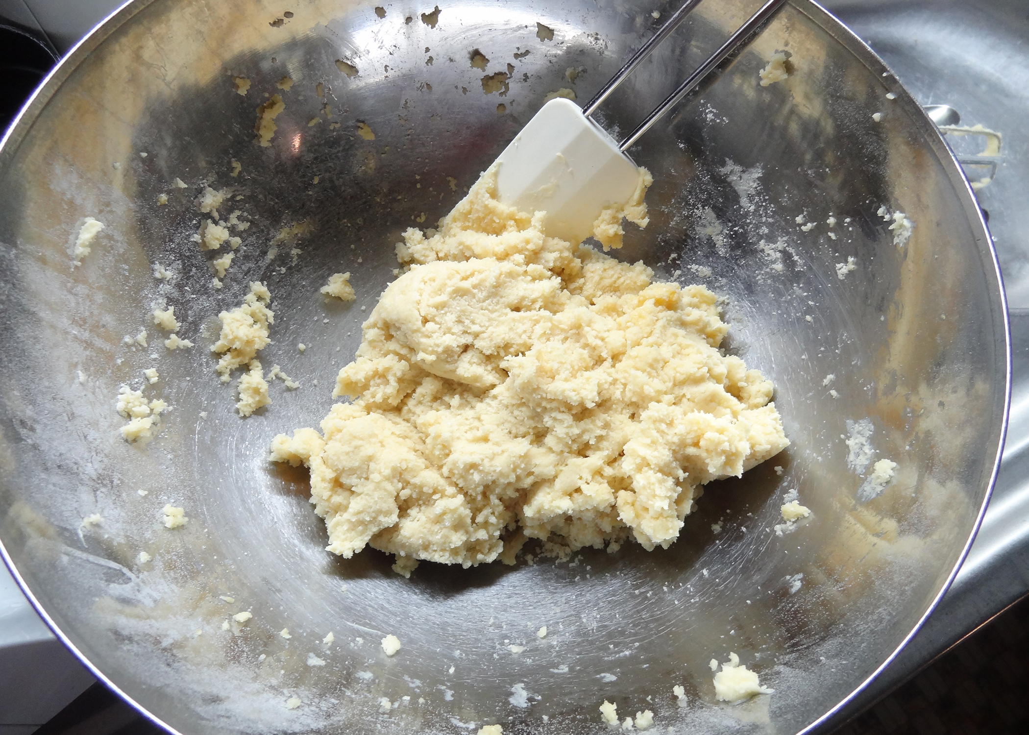 Dann das Ei langsam unterrühren. Zwei Drittel des Teiges in die vorbereitete Form geben und gleichmässig andrücken.