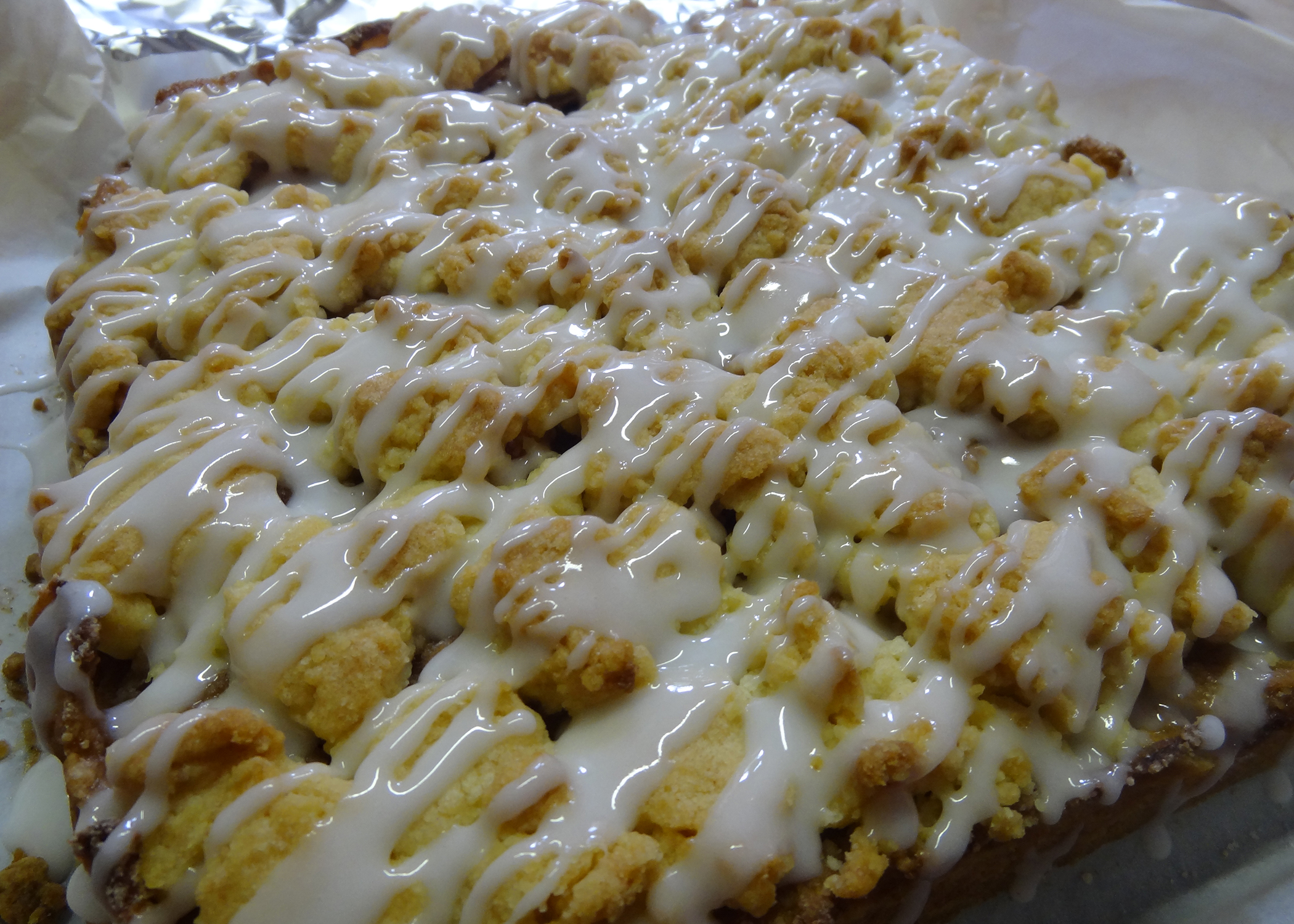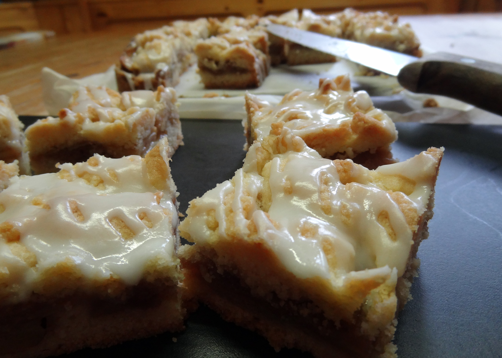 Wie ihr vielleicht ja schon mitgekriegt habt, lieben wir es einfach zu backen. Aber was wir noch mehr lieben, ist wenn andere Leute unseren Blog genauso sehr lieben wie wir. Als also eine Freundin sich so begeistert über unsere Seite gezeigt hat und ihr Geburtstag noch gerade vor der Türe stand, haben wir beschlossen ihr ein original sugarheaven-Geschenk zu machen und haben ihr diese Schnitten gebracht. Die Apfel-Zimt Füllung passt gut zur etwas kühleren Jahreszeit und ist schnell und einfach zubereitet. Auch der Teig erfordert nicht besonders viel Zeit und ist sehr simpel. Diese Leckerbissen können also kaum misslingen und der Zuckerguss komplettiert den Geschmack sowie das Aussehen. Also ein echtes NO-FAIL Rezept für alle Apfelliebhaber. Das Geburtstagskind hat sich jedenfalls gefreut – und wir uns auch.