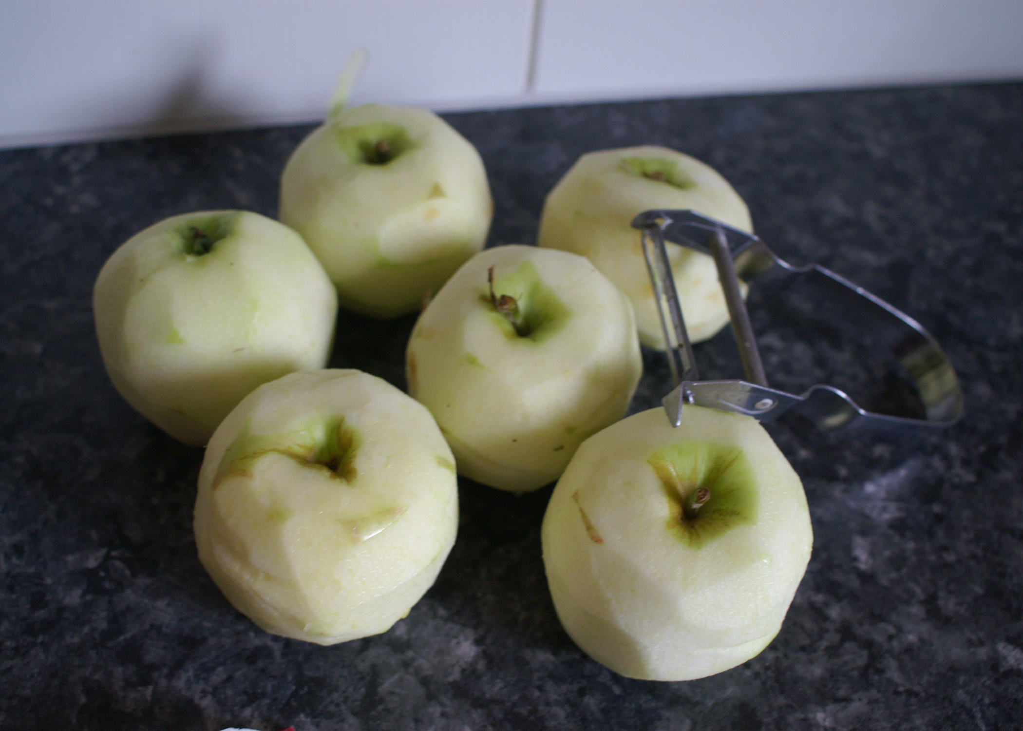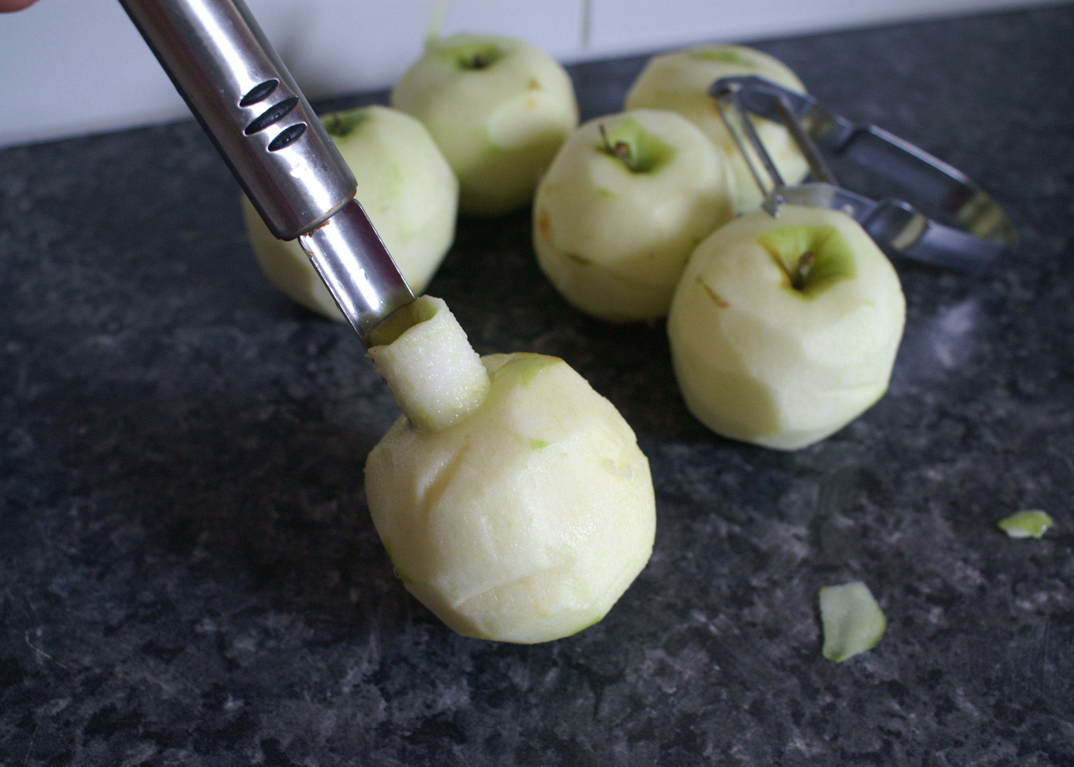 Die Äpfel schälen und das Kerngehäuse ausstechen.