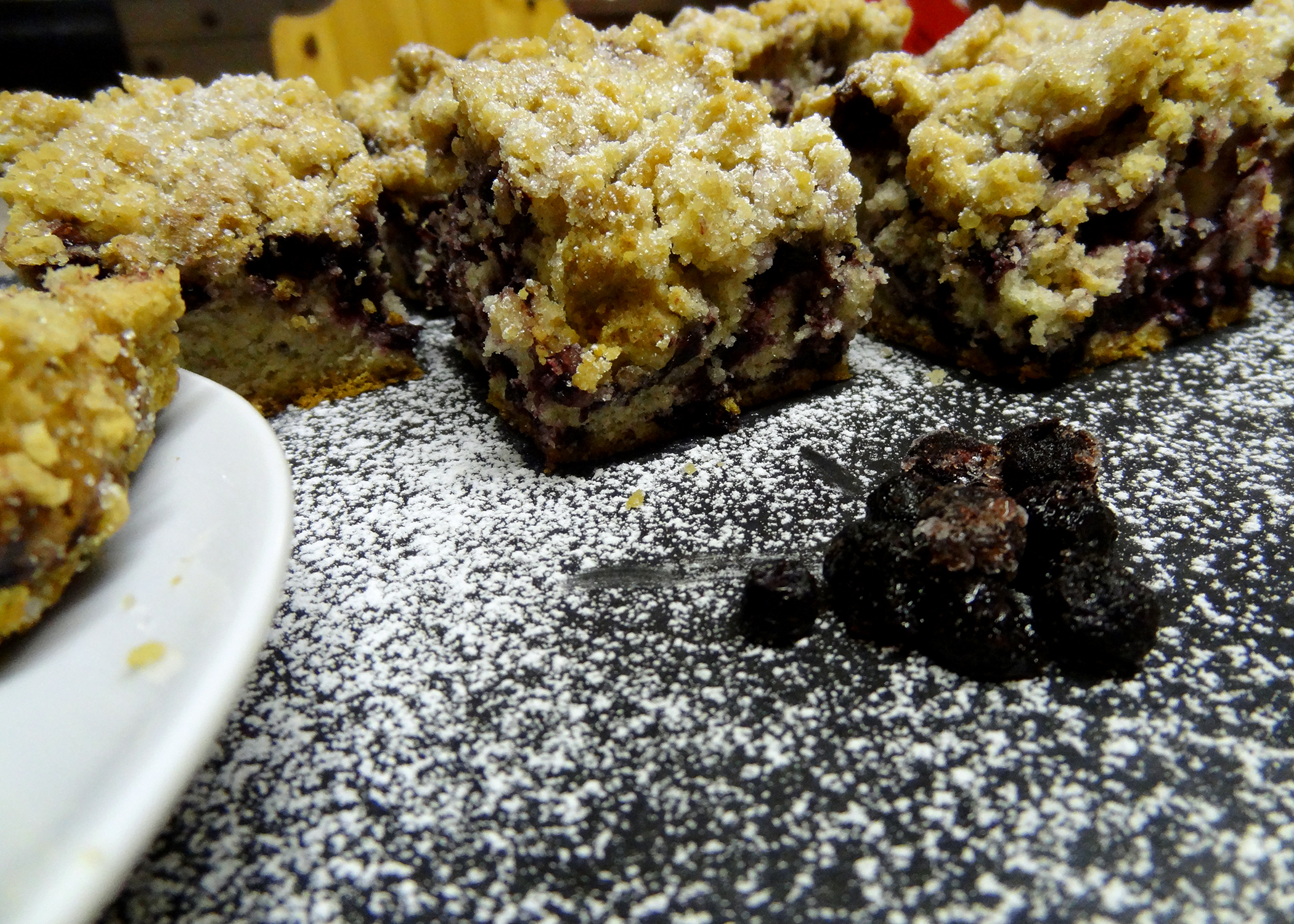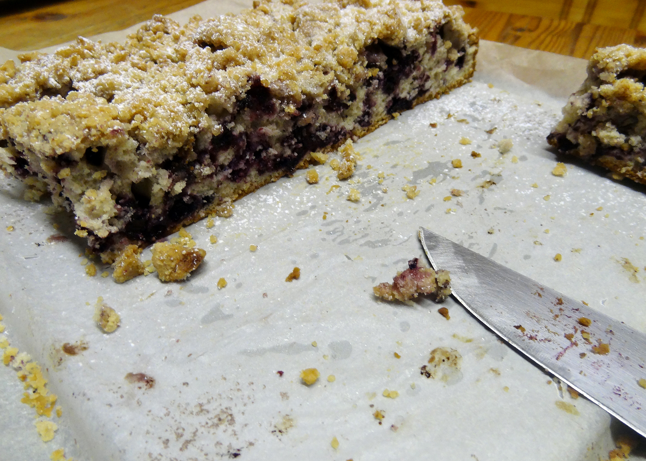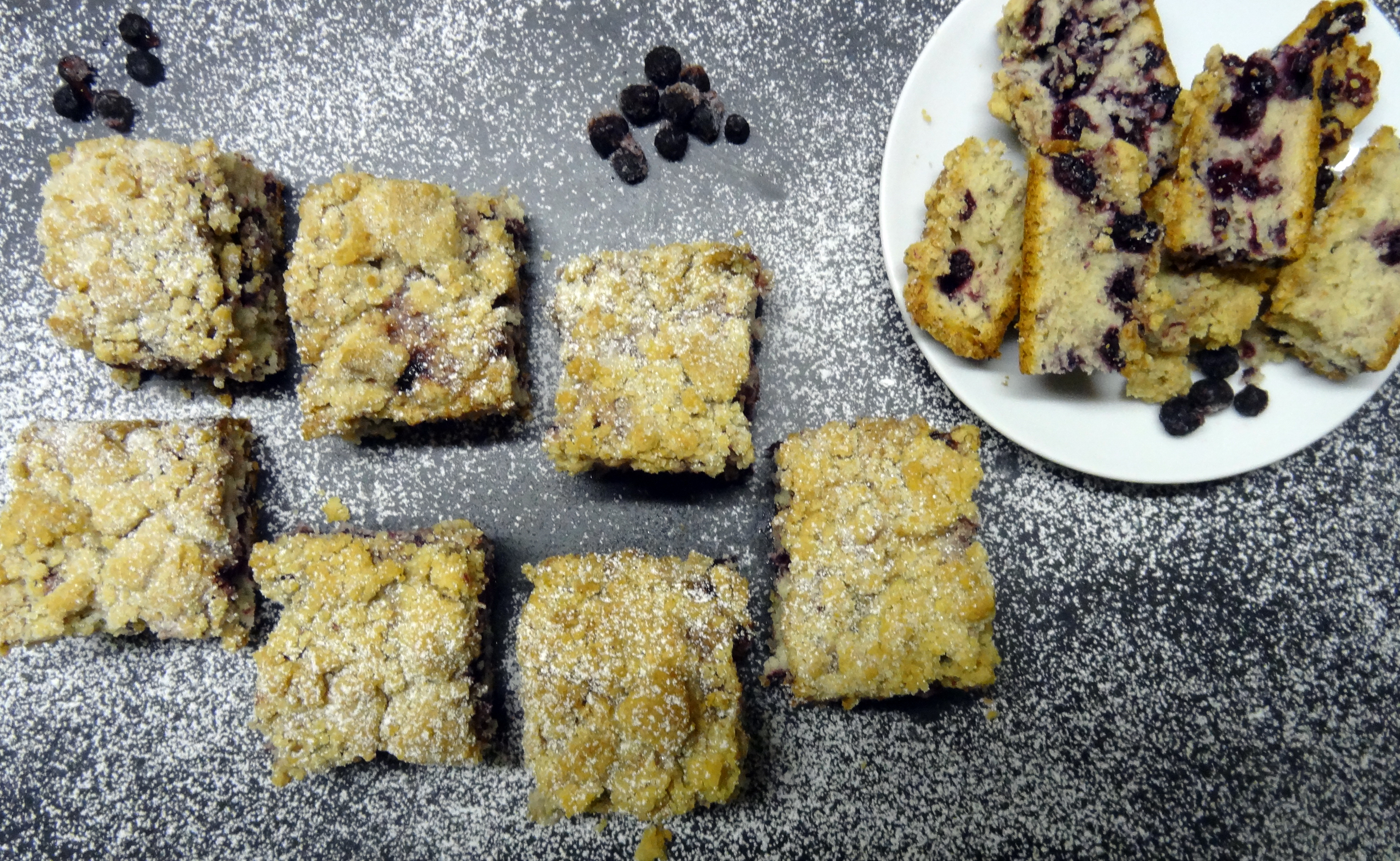 Schule ist anstrengend. Prüfungen noch anstrengender. Darum habe ich mich entschlossen, meiner Klasse eine kleine Belohnung für einen geschriebenen Rechtstest zu backen. Das Originalrezept für den „Blueberry Crumble Pie“ hatten wir schon seit langem auf dem Internet entdeckt und wollten es unbedingt ausprobieren. Während des Zubereitens habe ich paar Mengen und Zutaten abgeändert, wodurch unser eigener Heidelbeer Streuselkuchen entstand. Da ziemlich viel Zimt und auch Muskatnuss in den Teig kommen, sind sie vielleicht nicht jedermanns Sache, aber der Klasse haben sie geschmeckt und sämtliche Energiespeicher nach abgegebener Prüfung wieder komplett aufgeladen. Wenn ihr aber Beeren und Streusel mögt, ist dieser Kuchen auf jeden Fall einen Versuch wert.