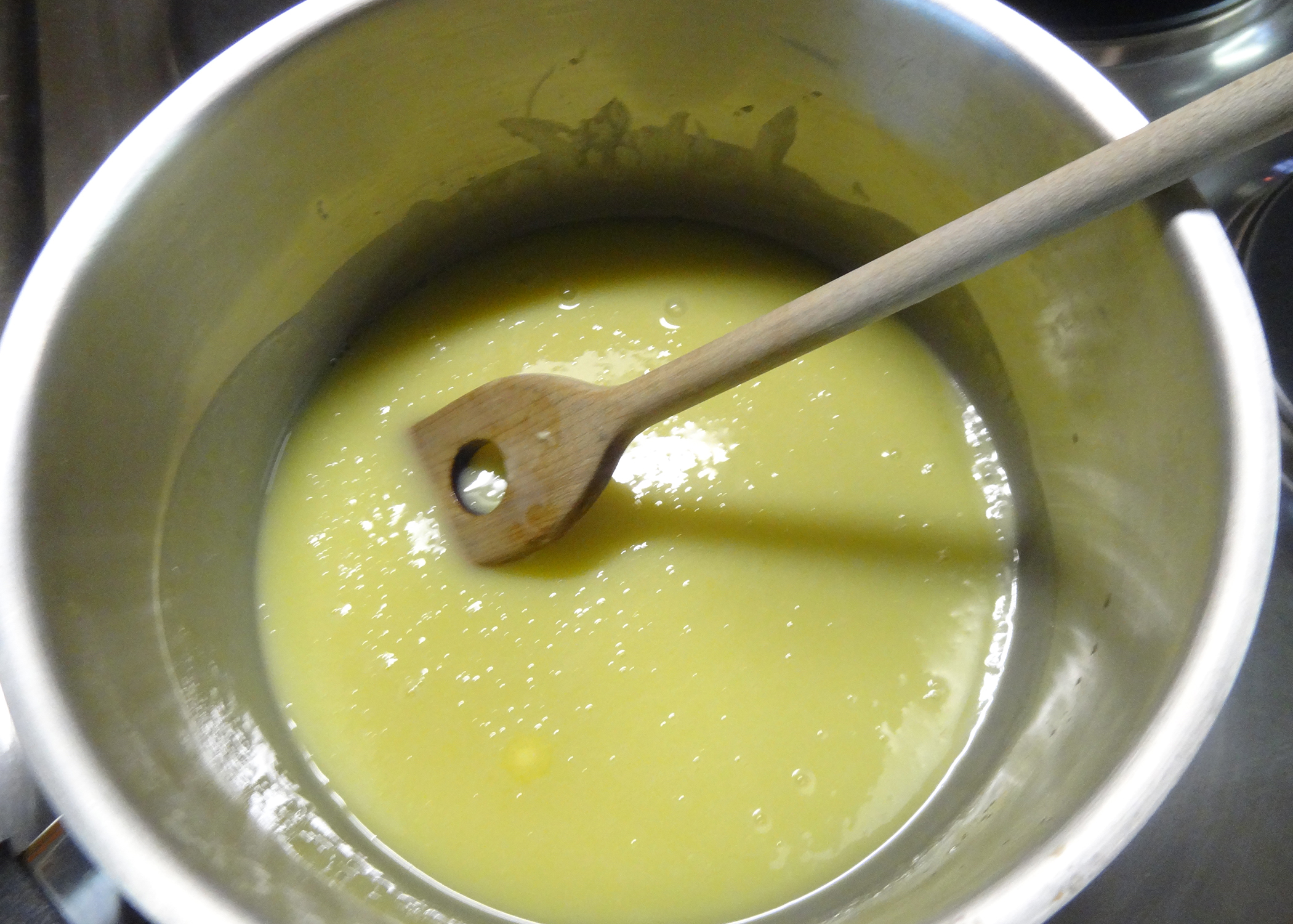 Jetzt Salz, Kokosflocken und Zitronenschale darunterrühren.