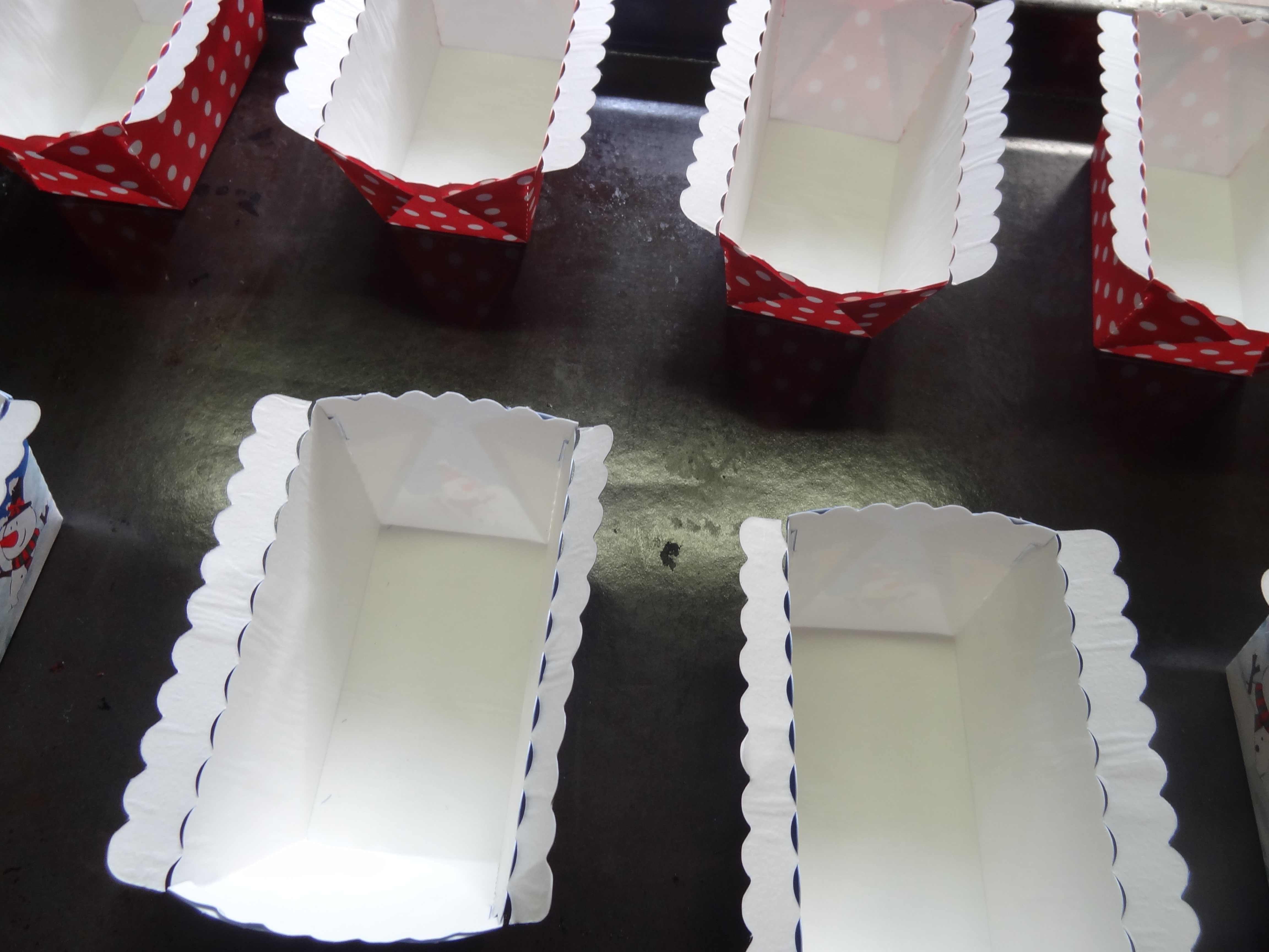 Für die Biskuits sechs mini Cakeförmchen auf ein Backblech stellen und den Backofen auf 175°C vorheizen.