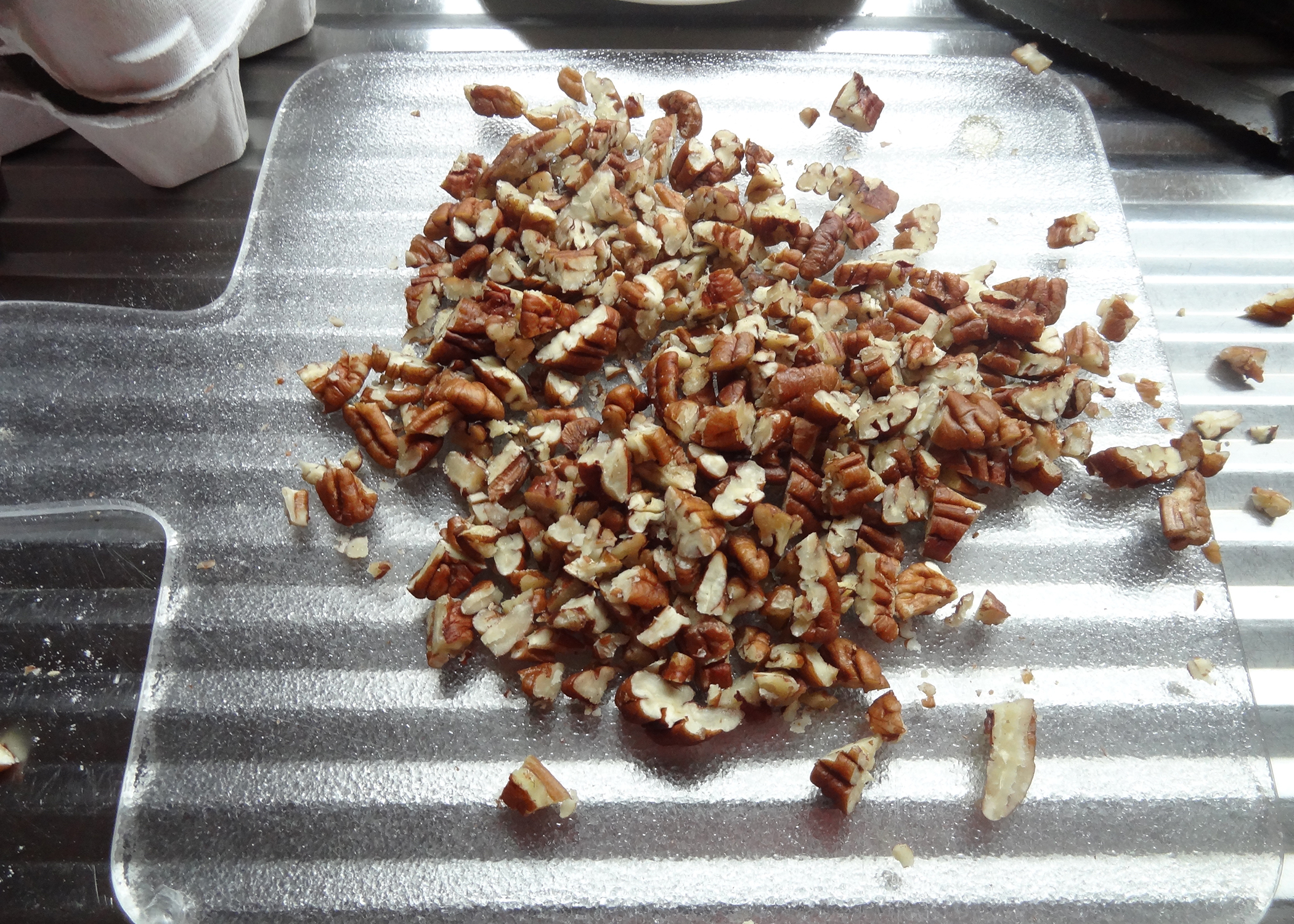 Jetzt wird in einer kleinen Schüssel die Füllung zubereitet. Dazu die Pekannüsse fein hacken und mit dem Zimt und Zucker vermischen.