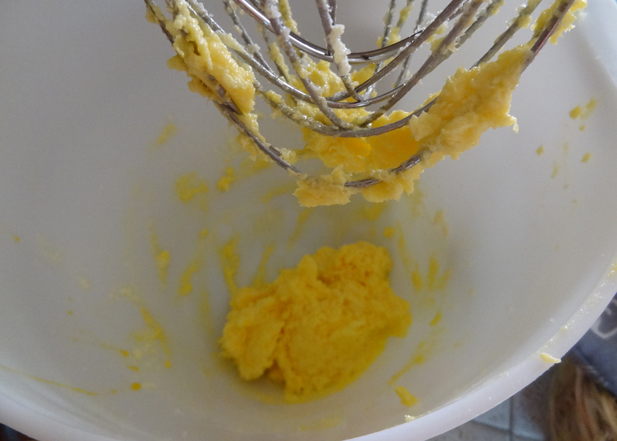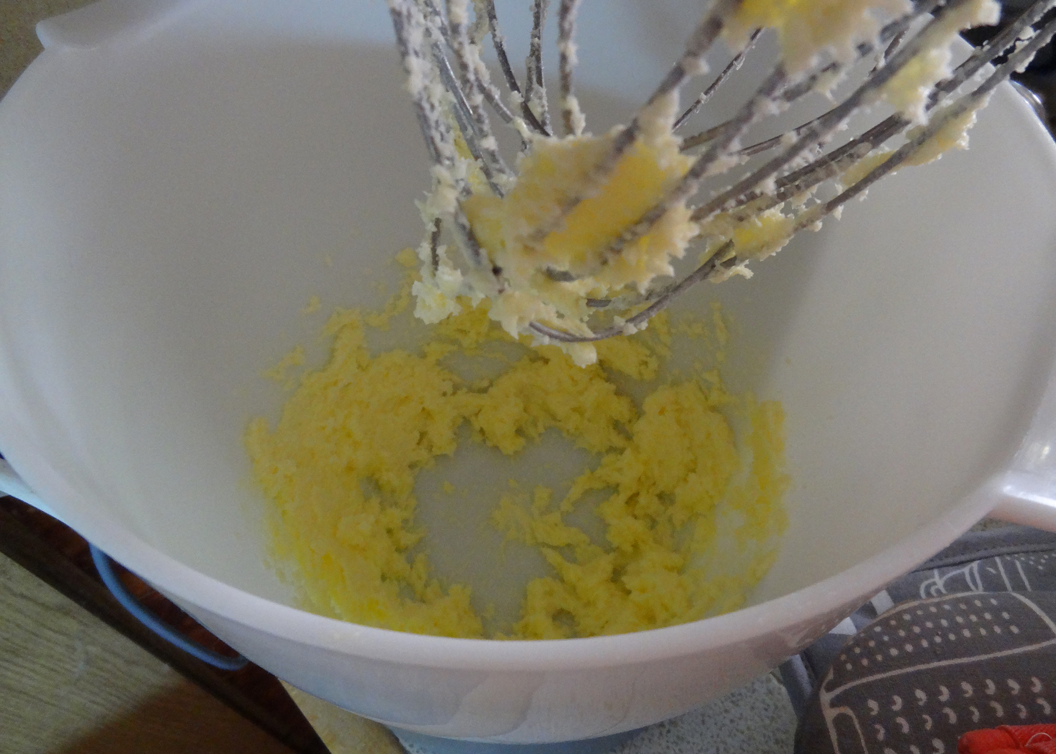 Für die Cakes die Butter mit 60g Zucker und Vanillezucker cremig rühren. Anschliessend die Eier trennen und die Eigelbe unter die Masse rühren.