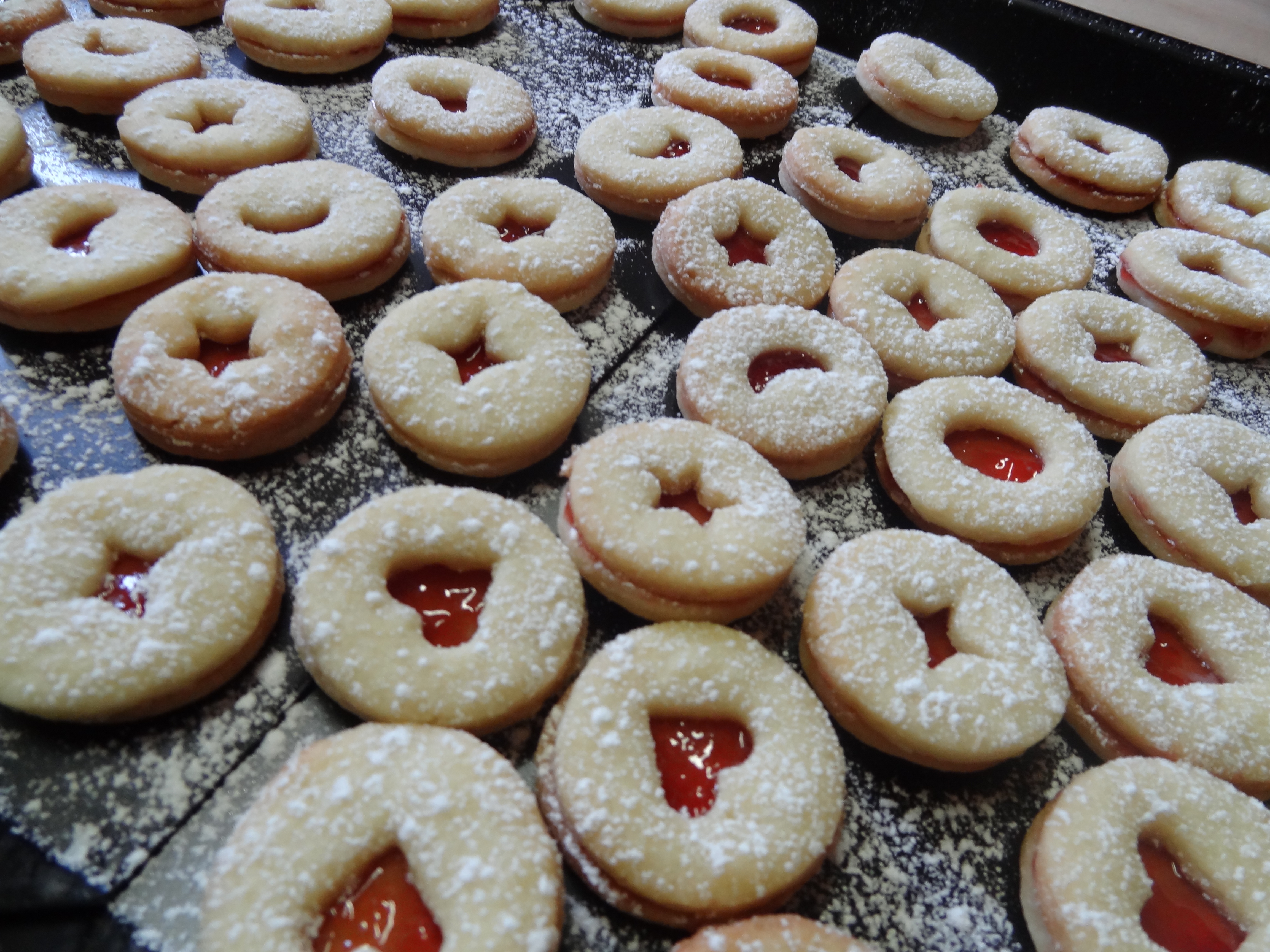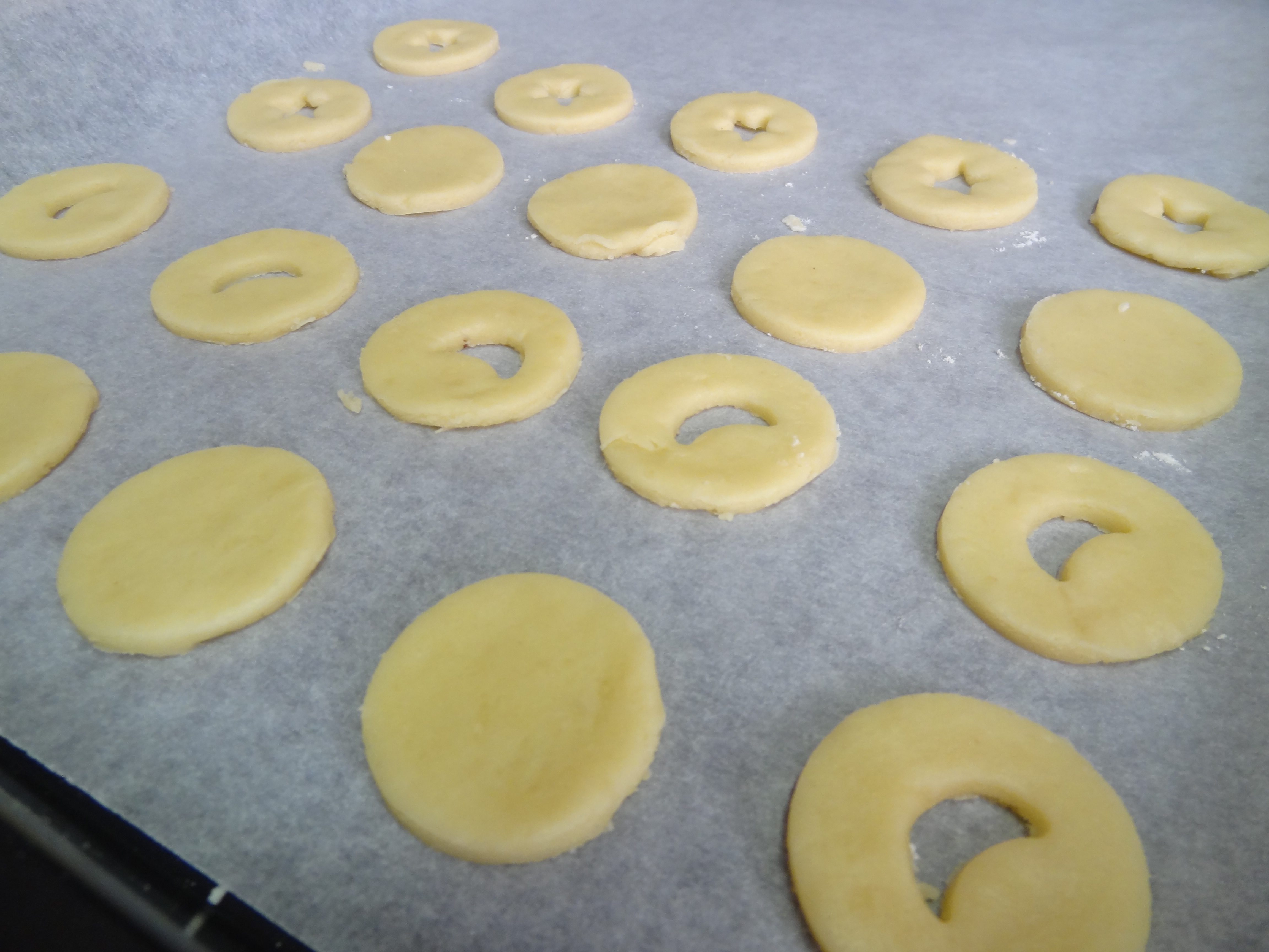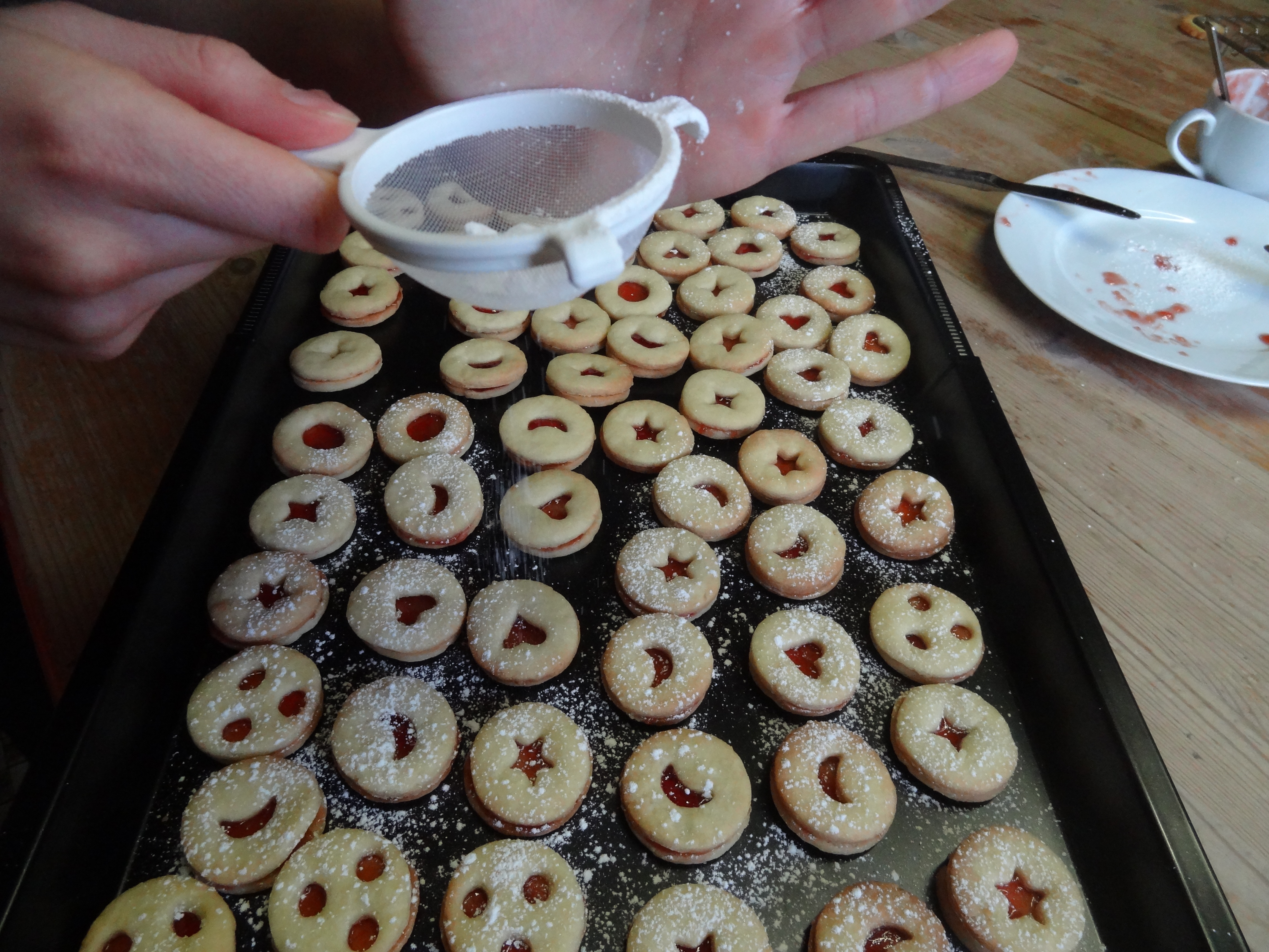 Da guetzle alleine nur halb so viel Spass macht, haben Jana und ich die Spitzbuben zusammen gebacken. Sie hat den Teig schon mal vorbereitet und im Team haben wir dann fleissig ausgestochen. Eigentlich ein ziemlich grosser Aufwand für nicht allzu viele Spitzbuben. Doch es lohnt sich ganz bestimmt!