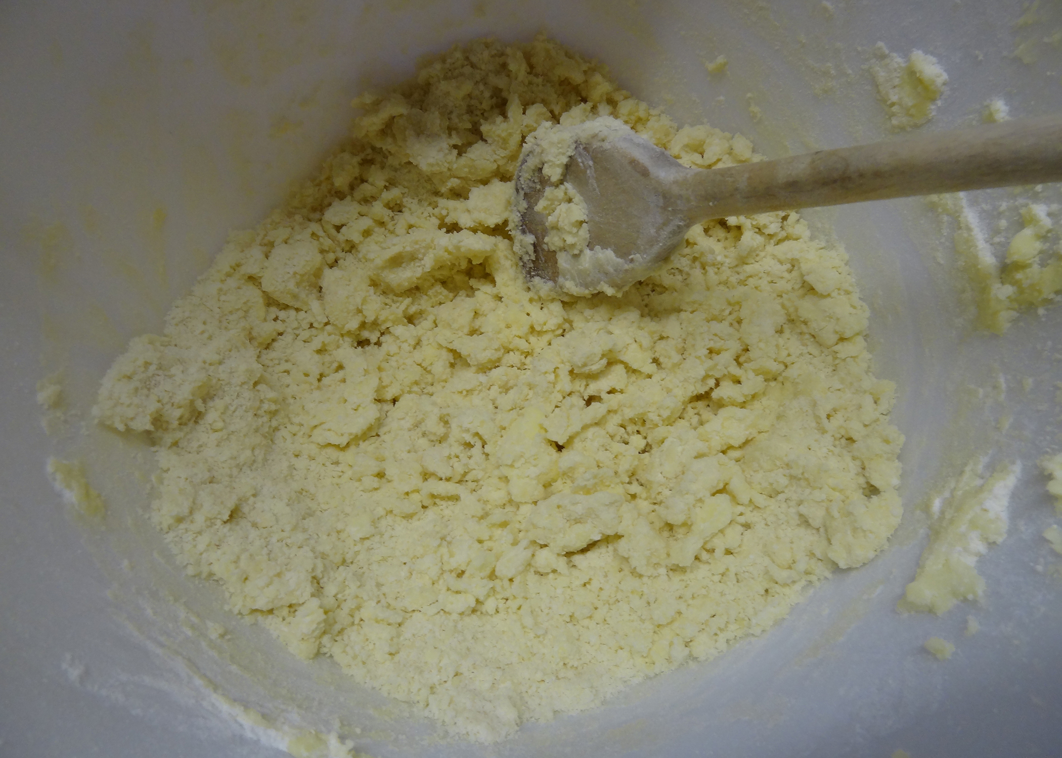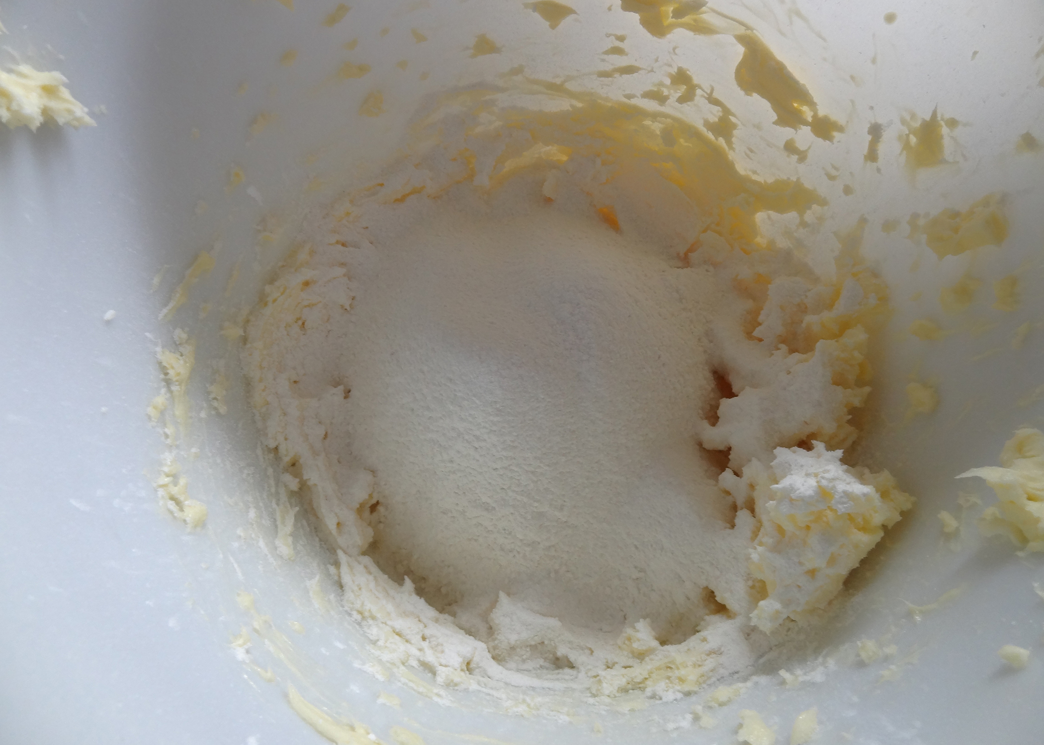 Für den Teig zuerst die Butter rühren bis sich Spitzchen bilden. Anschliessend Puderzucker, Vanillezucker, Salz und Eiweiss dazugeben und sehr gut rühren, sodass die Masse sehr hell wird. Zum Schluss das Mehl auf die Masse sieben, alles vermischen (nicht mit dem Mixer!) und zu einem Teig zusammenfügen (nicht kneten). In Folie eingepackt eine Stunde kühl stellen oder bis zum Verwendungstag einfrieren.