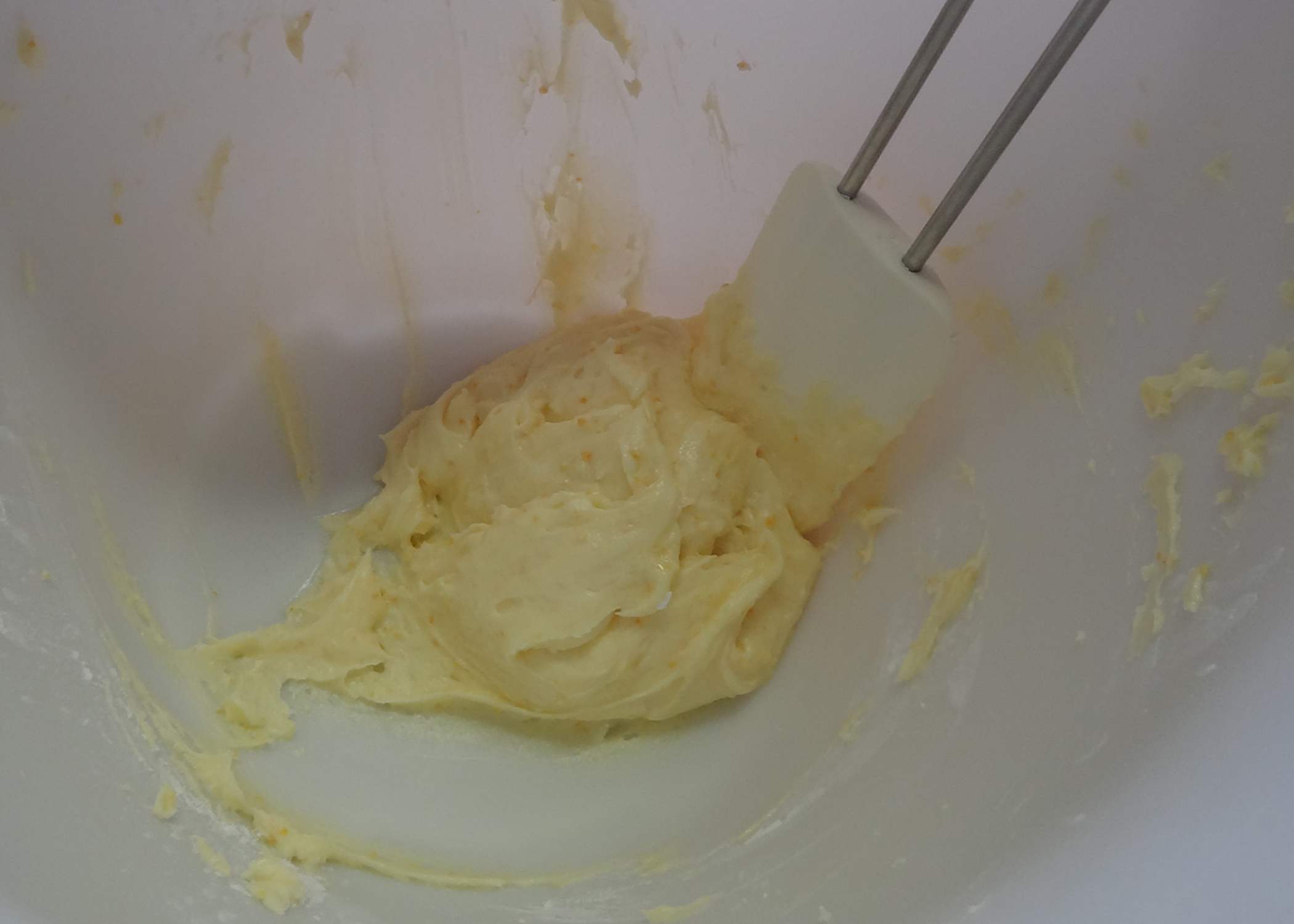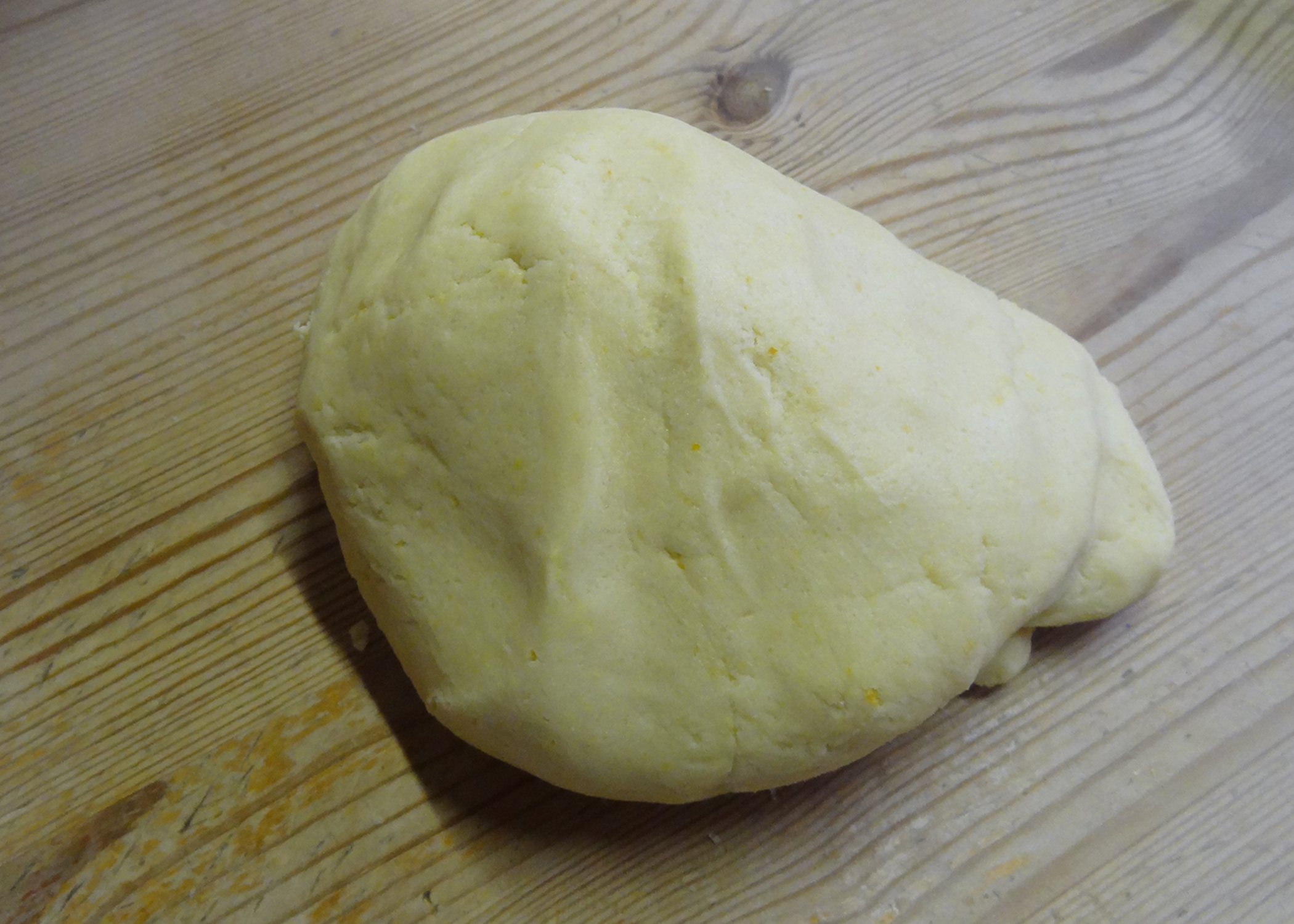 Danach die Orangenschale, Salz, Backpulver und Mehl dazugeben, alles gut vermischen und verkneten.