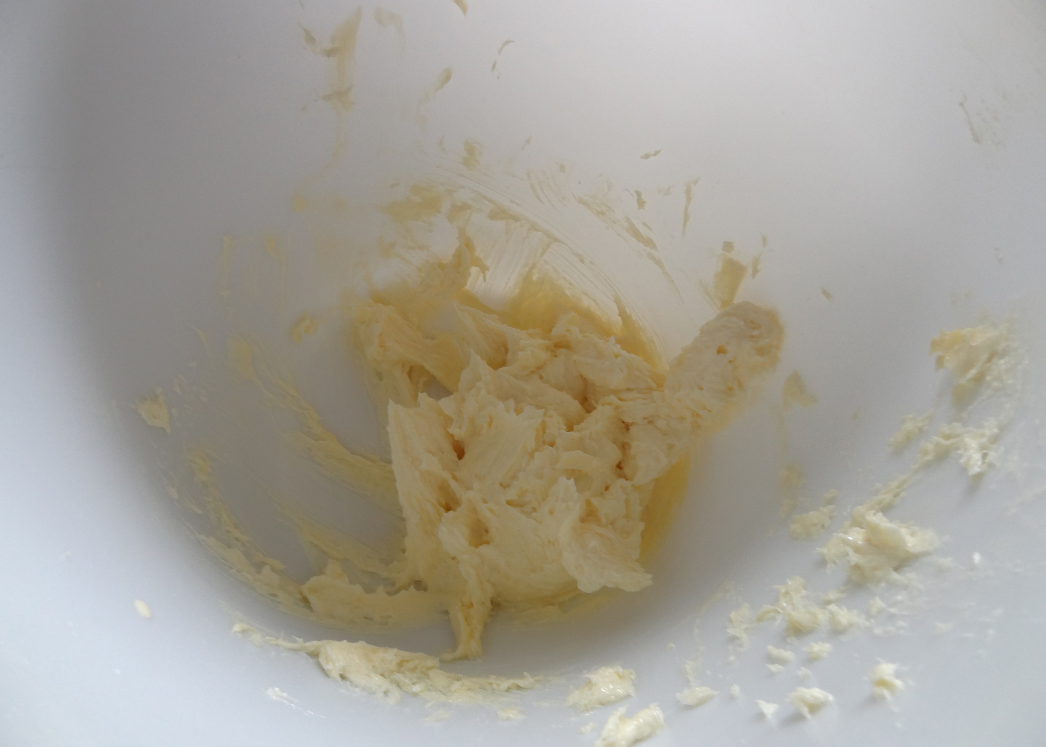 Den Backofen auf 140°C Umluft vorheizen. Für die Teigkugeln zuerst die Margarine cremig rühren. Anschliessend den Zucker und das Ei hinzugeben und verrühren.