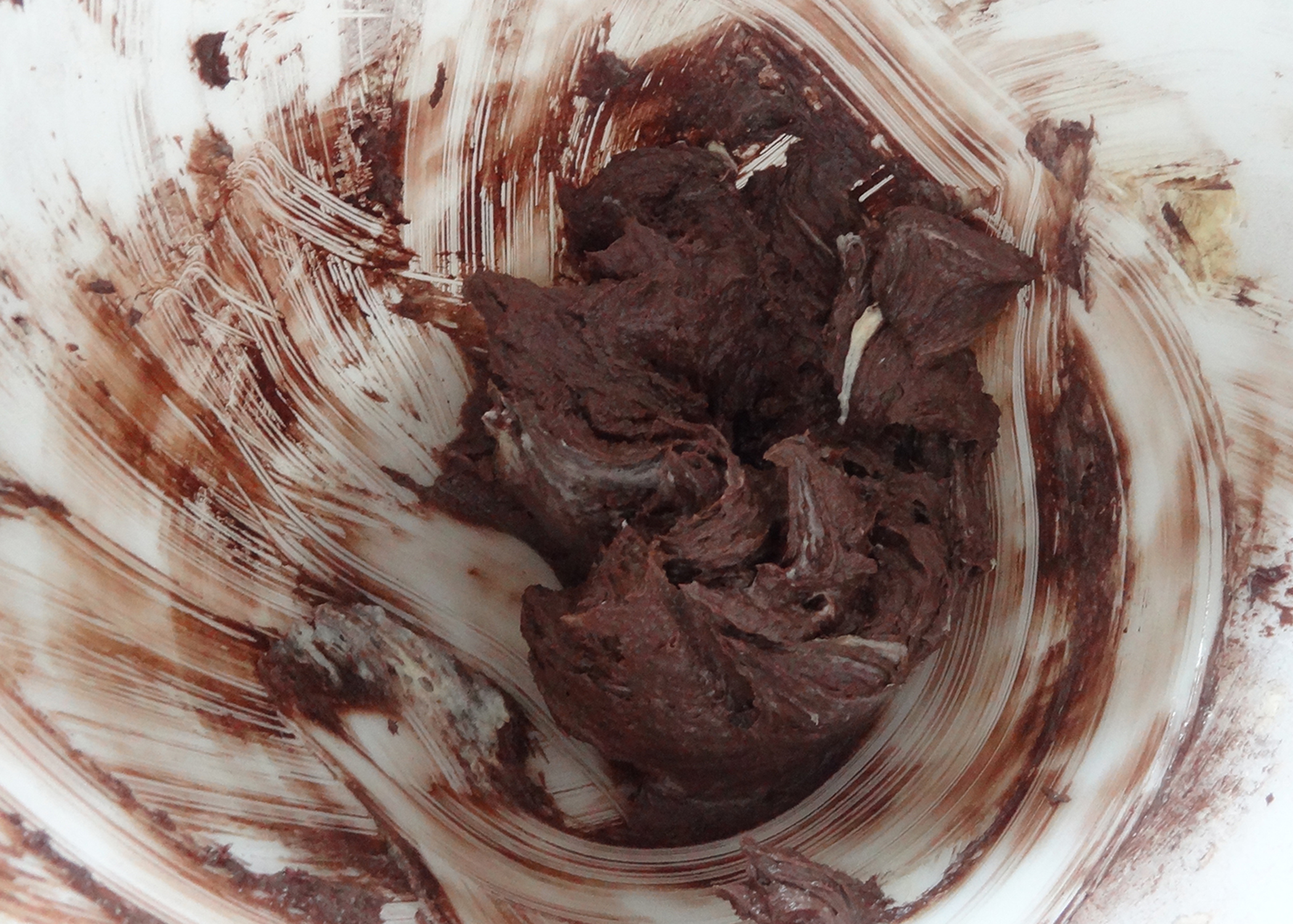 Im Anschluss folgt die Zubereitung des dunklen Teiges. Dazu erneut Margarine weich rühren und Zucker, Vanillezucker, Salz und Milch beigen und rühren, bis die Masse hell wird. Jetzt das Kakaopulver gut unterrühren. Zum Schluss wiederum das Mehl beigen, vermischen und zu einem Teig zusammenfügen.
