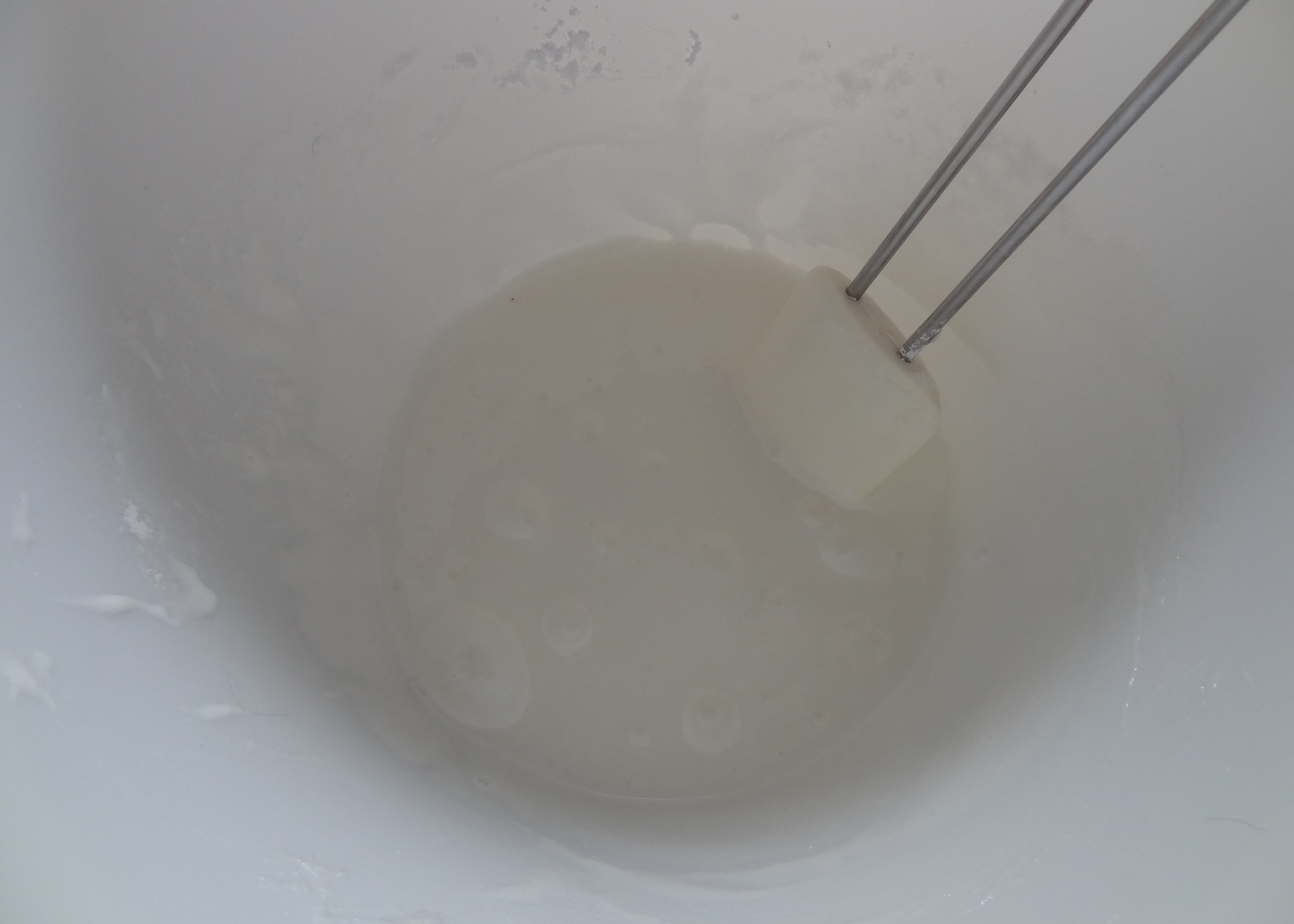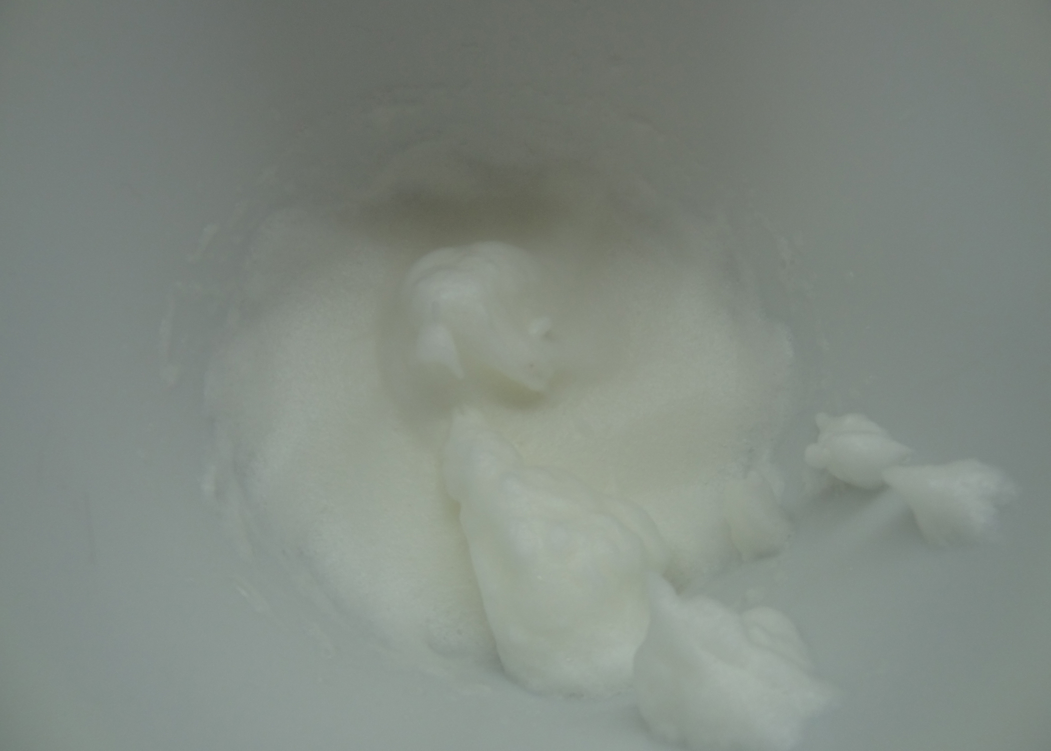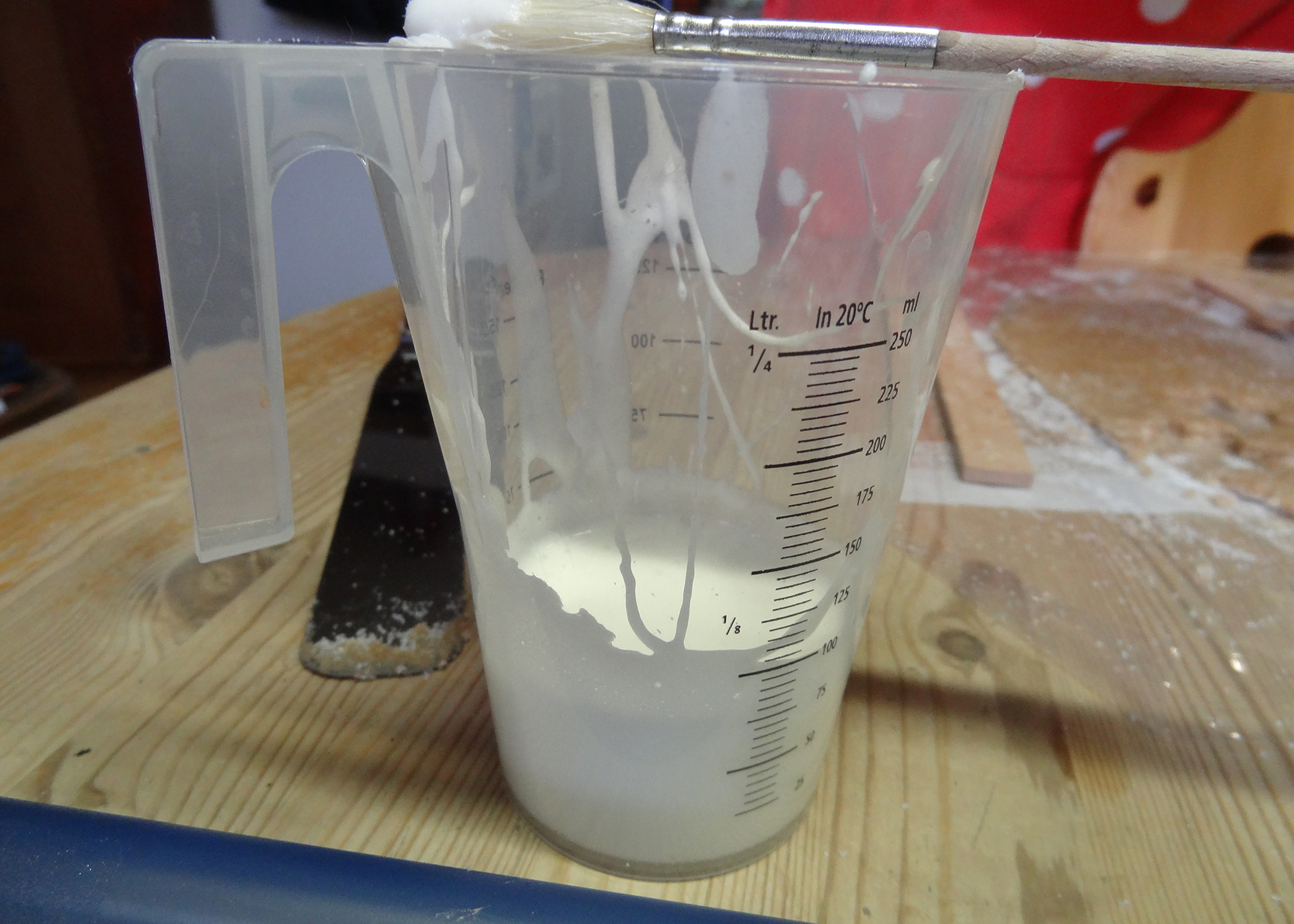 Zuerst das Eiweiss mit dem Salz sehr steif schlagen. Dann den Puderzucker beigeben und verrühren. 1dl der Masse abmessen und beiseite stellen.