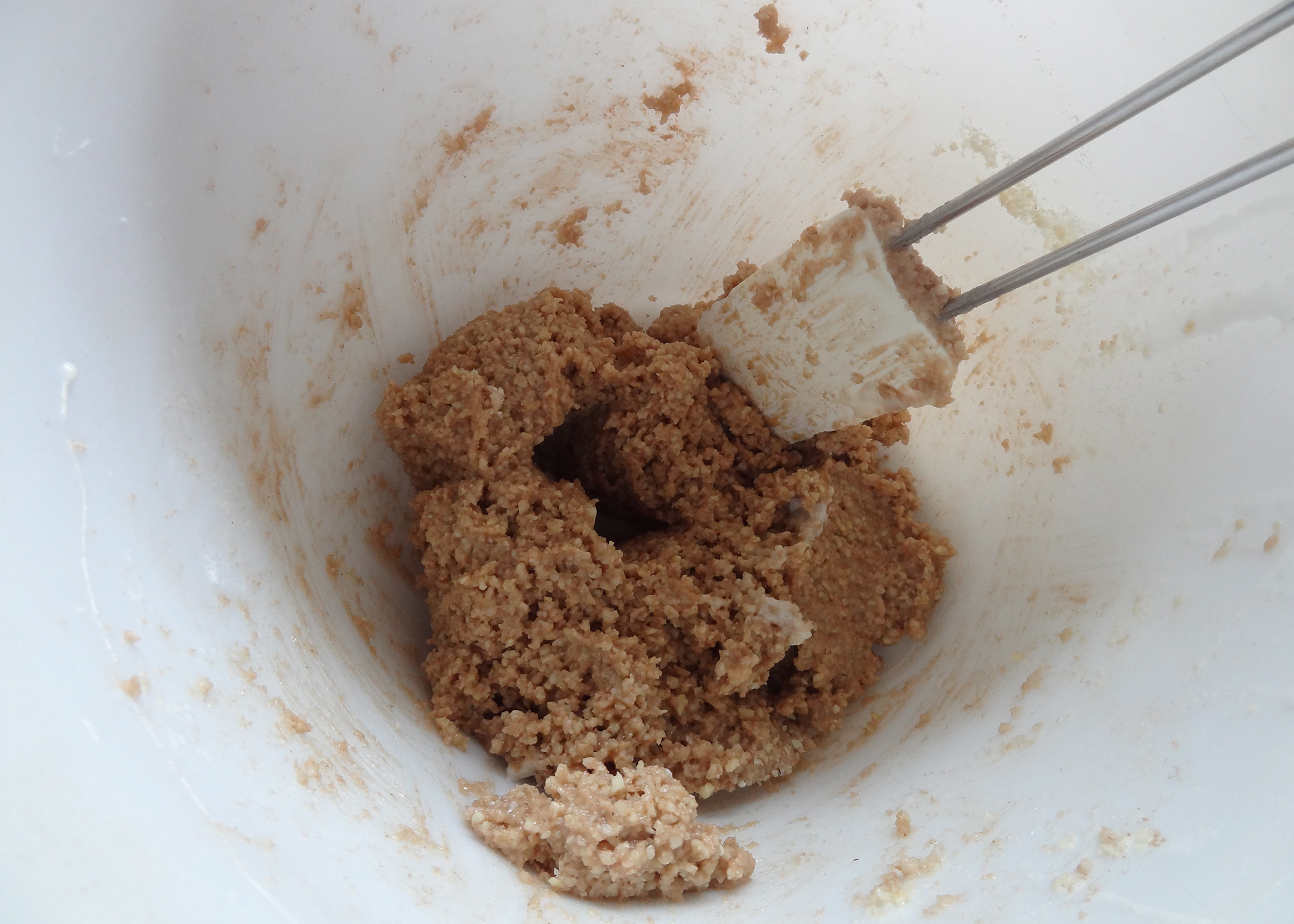 Im Anschluss Zimt, Kirsch und Mandeln zur Masse geben und zu einem Teig verrühren.