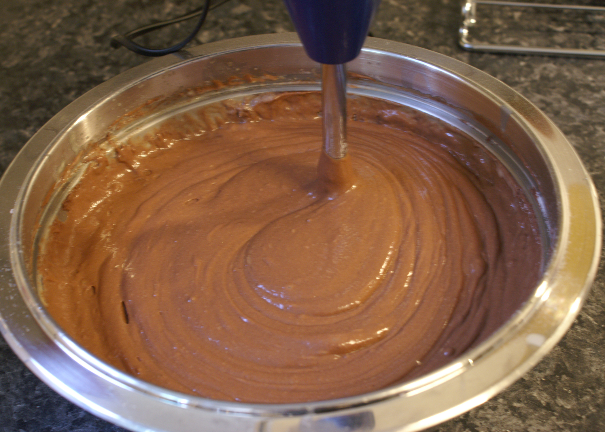Nun die Mehlmischung unter die feuchte Masse heben bis alles gut vermischt ist.
