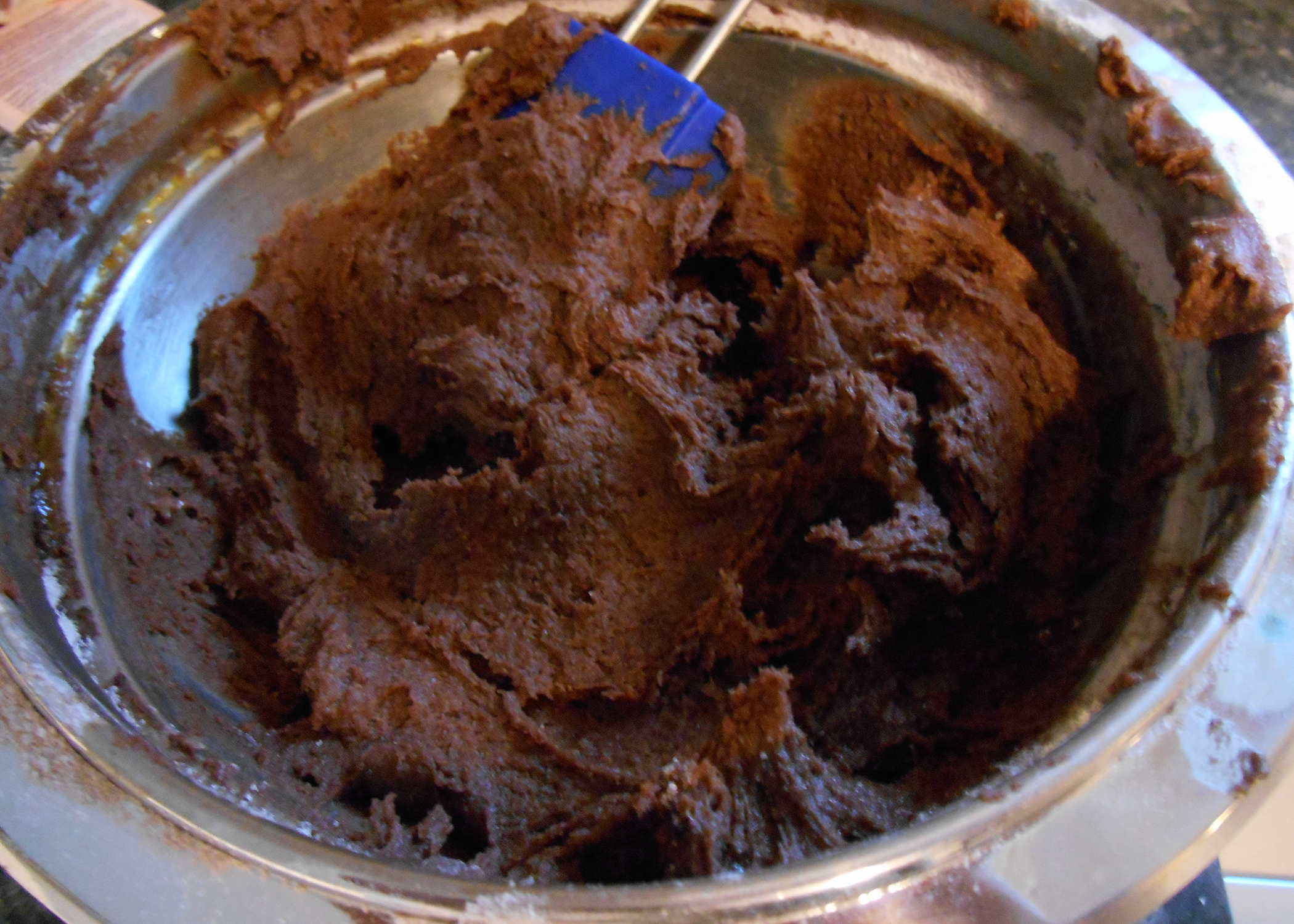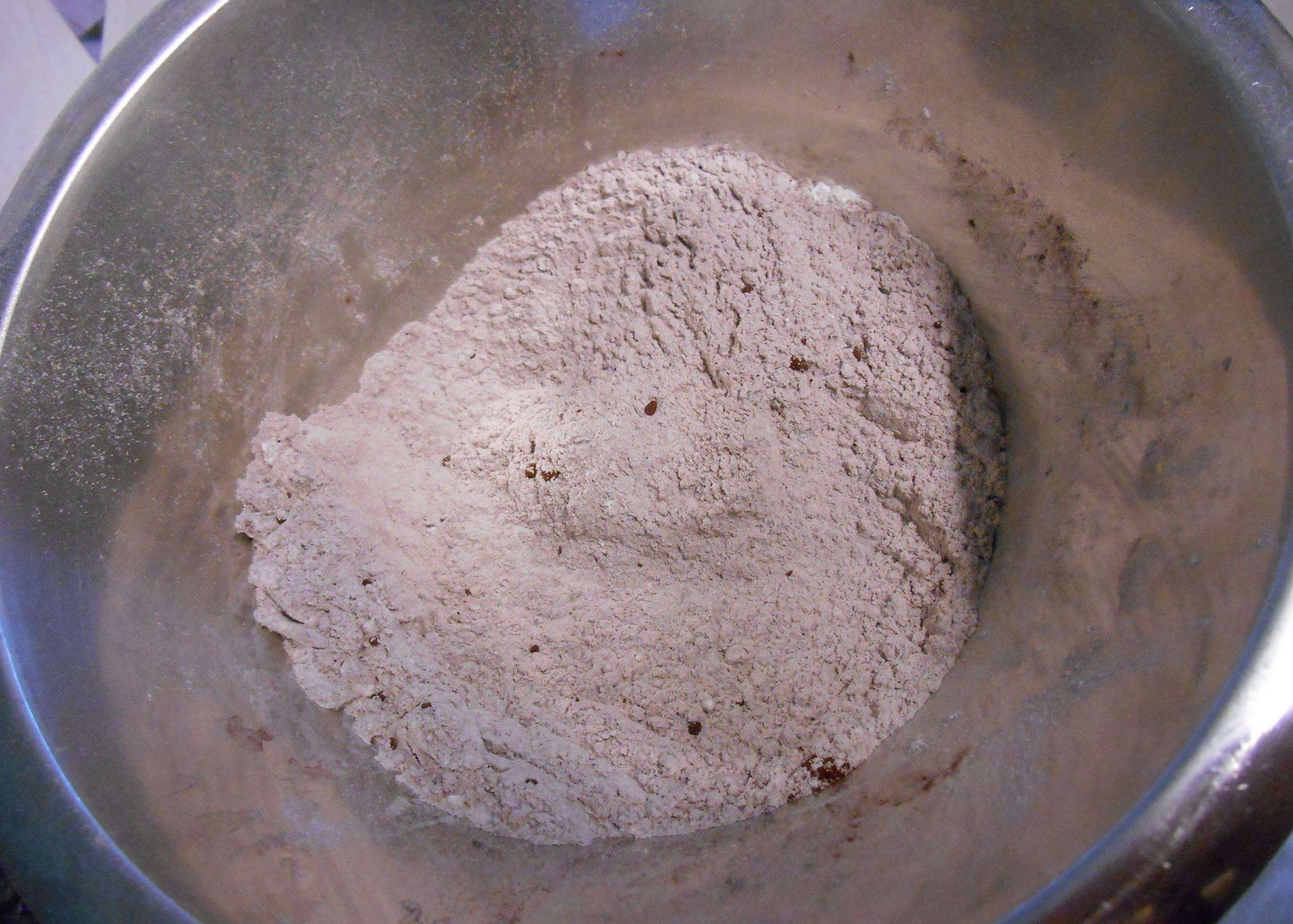 Jetzt die trockenen Zutaten, das heisst Mehl, Natron, Salz und Kakaopulver, mischen.