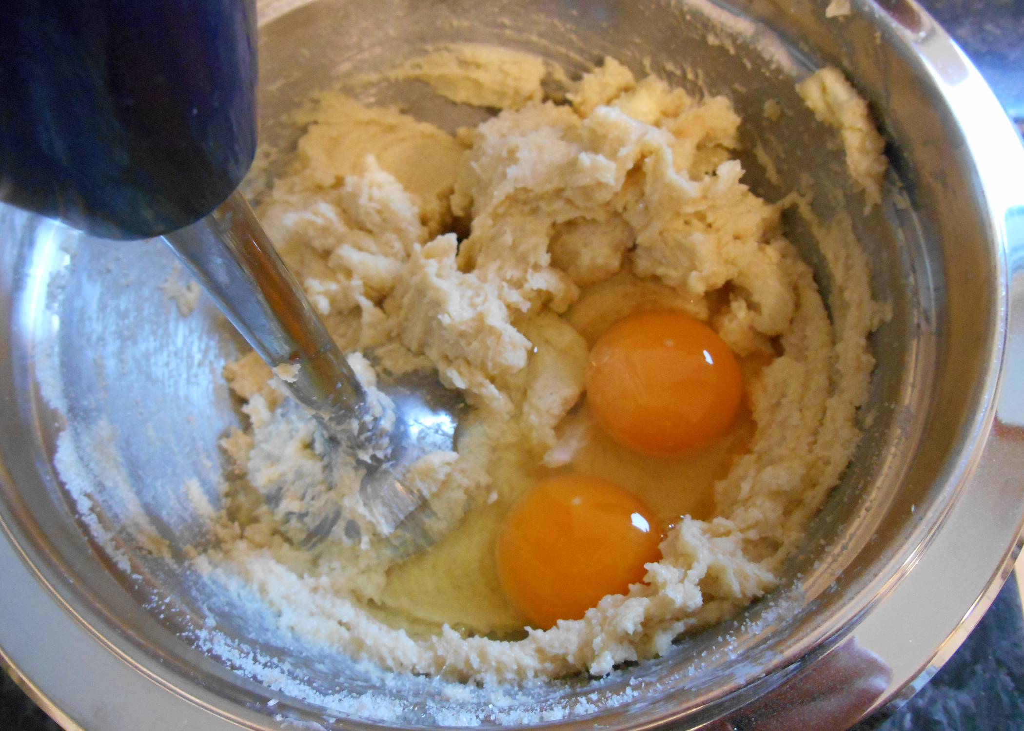 In einer anderen Schüssel die Butter mit dem braunen, normalen und Vanillezucker verrühren. Anschliessend die Eier dazuschlagen und rühren bis eine homogene Masse entsteht.