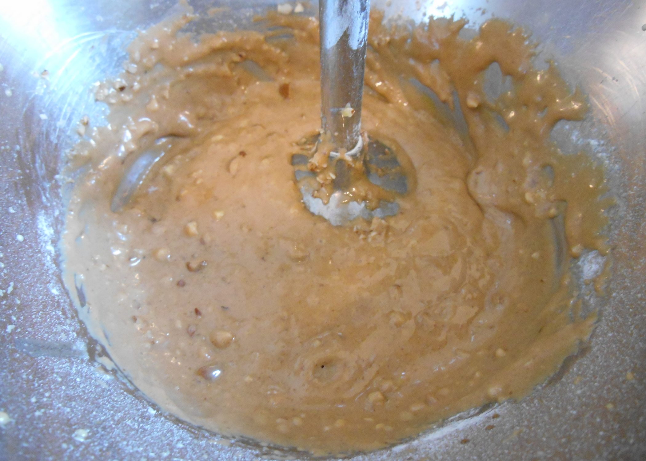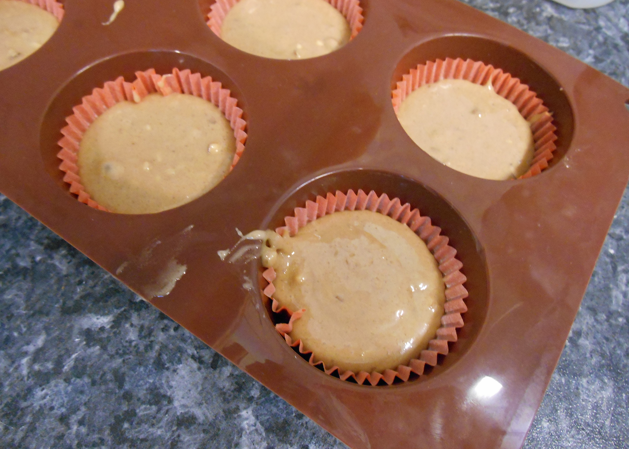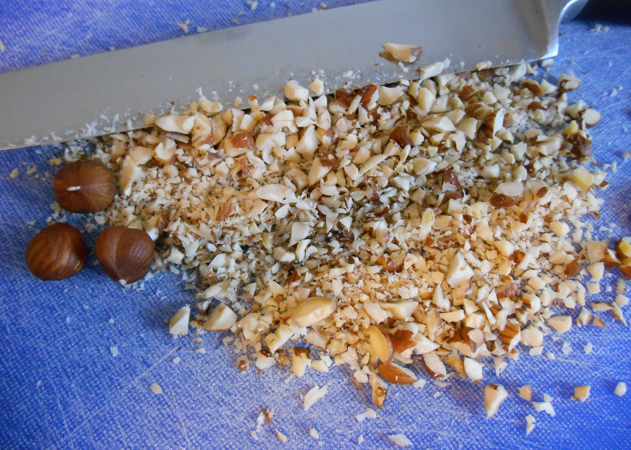 Die Haselnüsse mit einem guten Messer klein hacken und dann zu der Masse geben. Nun noch das Mehl und das Backpulver unterheben und schon ist der Teig fertig. Diesen jetzt auf die Muffinförmchen verteilen.