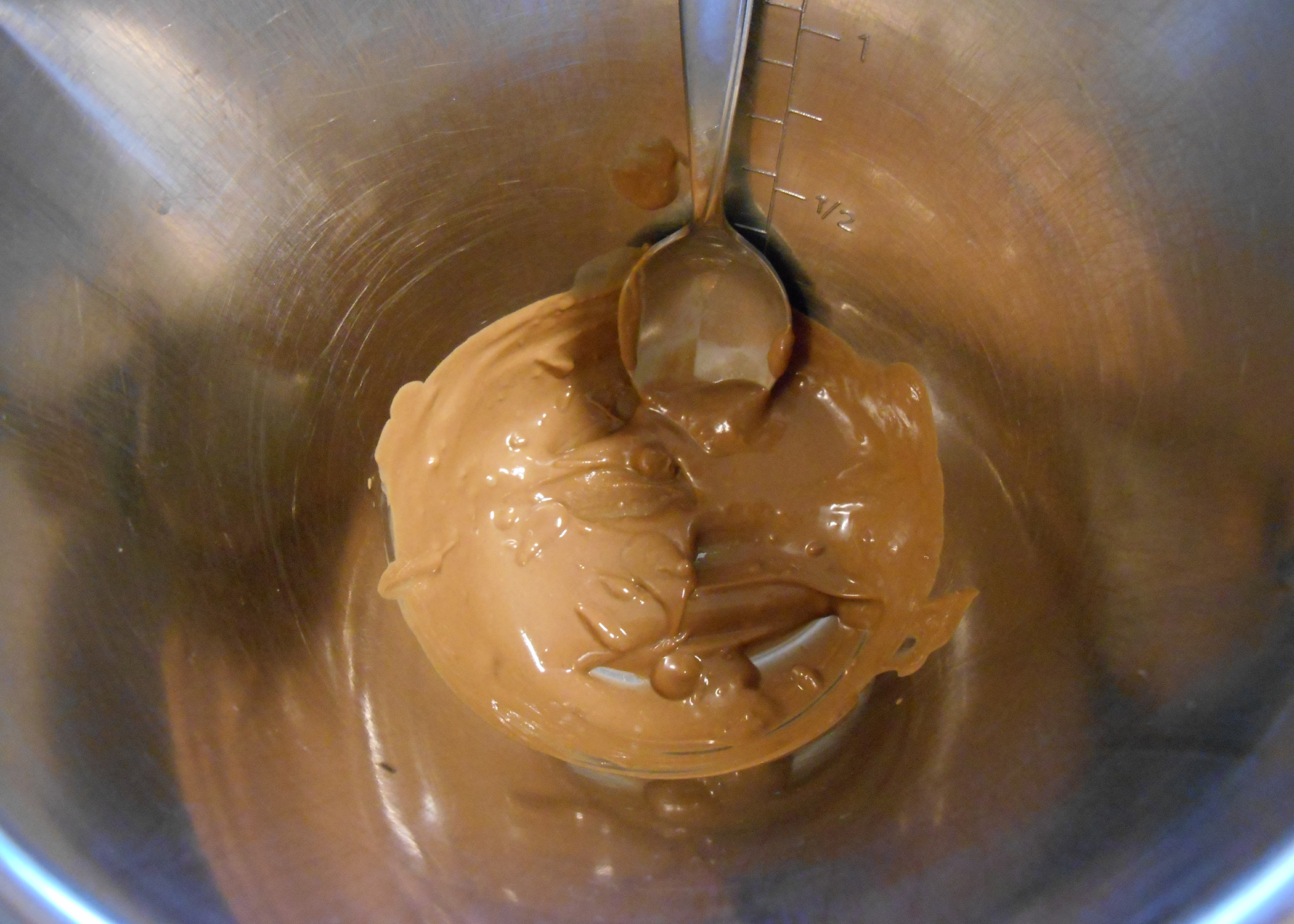 Im einem Wasserbad die 70g Torinoschokolade mit der Butter schmelzen und anschliessend etwas auskühlen lassen.