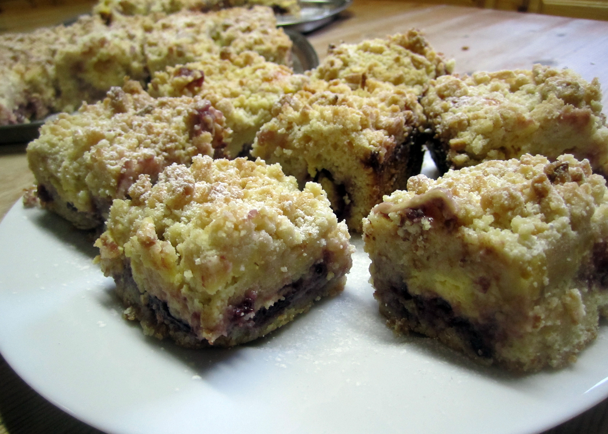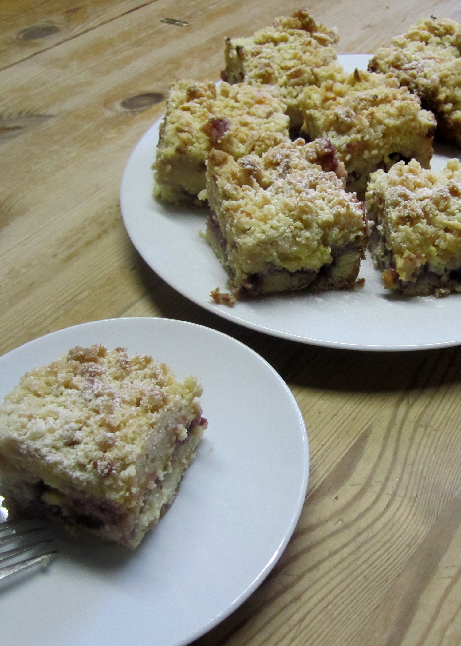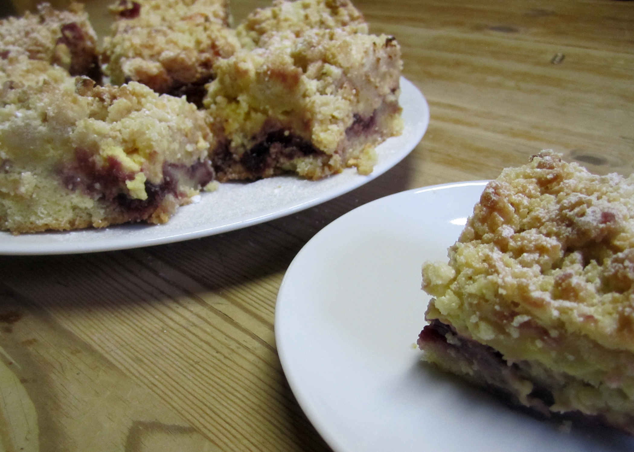 Letzte Woche wollte ich endlich dieses Rezept hier aus einem meiner Backbücher Zuhause ausprobieren. Ich hatte es schon vor einer Weile entdeckt und war bereits beim Rezept lesen begeistert: Eine Teigschicht, eine Kirsch Konfitürschicht, eine Vanillepuddingschicht; und das alles noch mit lauter Butterstreuseln bedeckt. Was für ein Traum!