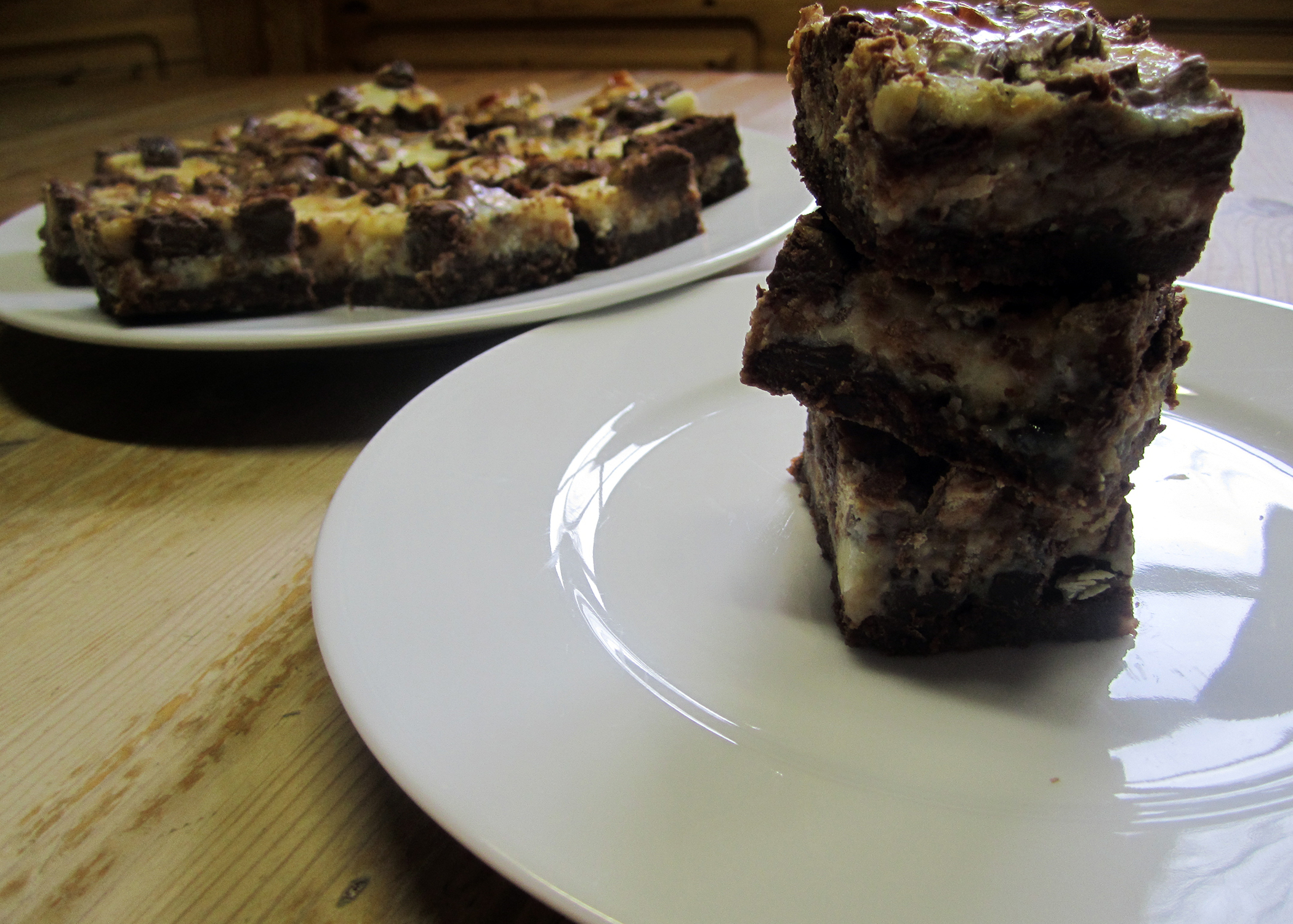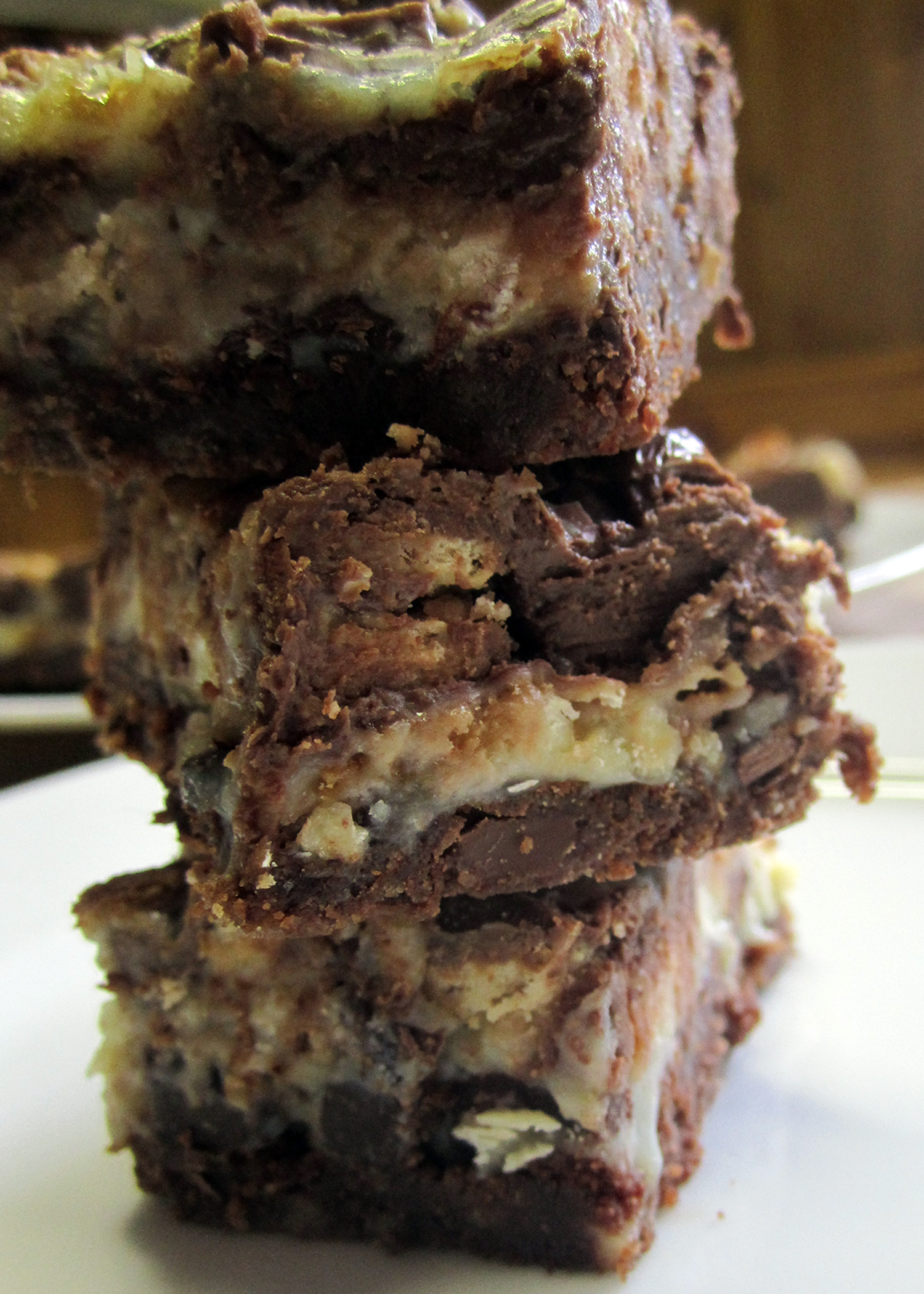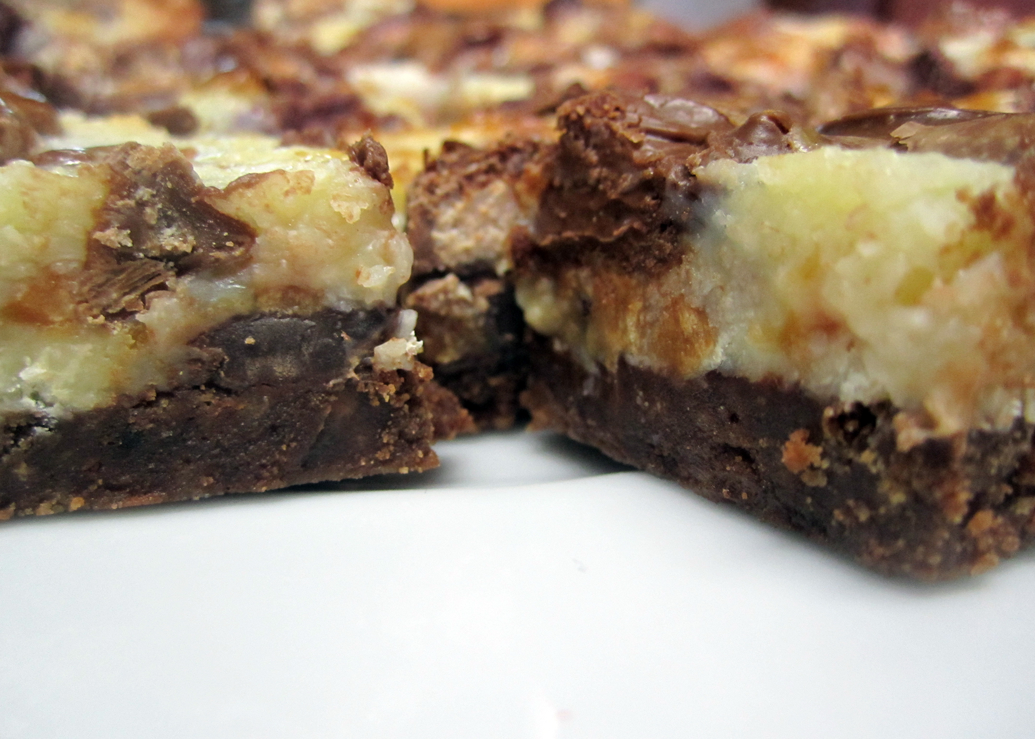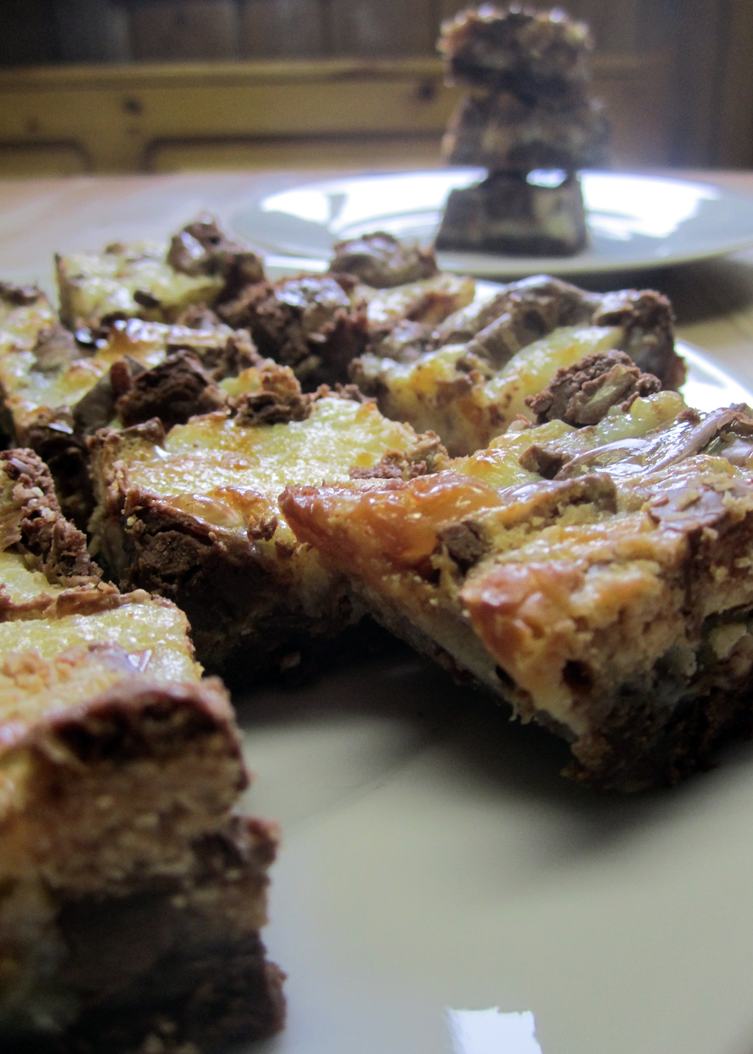 Das Resultat ist unheimlich schokoladig, mächtig und einfach unwiderstehlich. Die Schnittchen sind dank der Kondensmilch schön weich und da so viele verschiedene Aromen zusammenkommen, kann man nach einem Stück gar nicht aufhören, weil man noch gar nicht alles herausgeschmeckt hat.