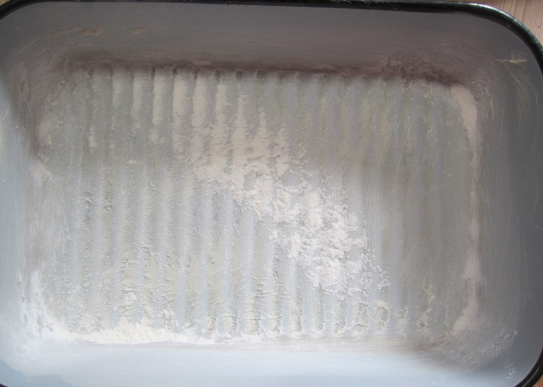 Den Backofen auf 175° vorheizen und eine rechteckige Form von ca. 22x33cm gut einfetten und bemehlen.